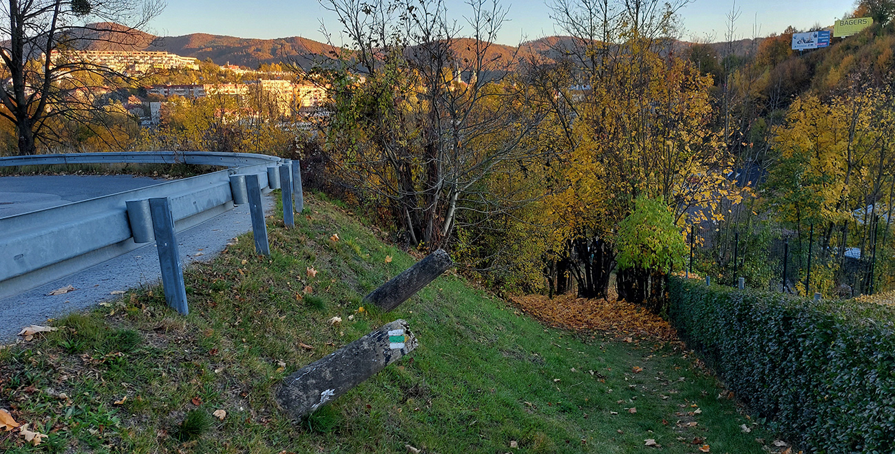 Cestou zo zastávky vlaku v Turčeku som preto najskôr poobzeral miestne „atrakcie“, pomimo značiek som sa vyštveral na hrebeň ku známemu tunelu, zbehol som na druhú stranu kúsoček po žltej, odpojil som sa na prevažne asfaltovú bežkársku trasu, vedúcu popod východné úbočia hrebeňa, po ďalšej žltej som zostúpil na „nižšie poschodie“ a po Rodinnom chodníčku a pomedzi nové domy som zo severu obišiel Kordíky, aby som sa už po zelenej značke prehupol do Starohorských vrchov a precupital cez krásne lúky pod Sokolím, Riečanské sedlo a Laskomer so známym vysielačom až dole do mesta, vynoriac sa na Medenom hámri, v parčíku cisárovnej Sissi.