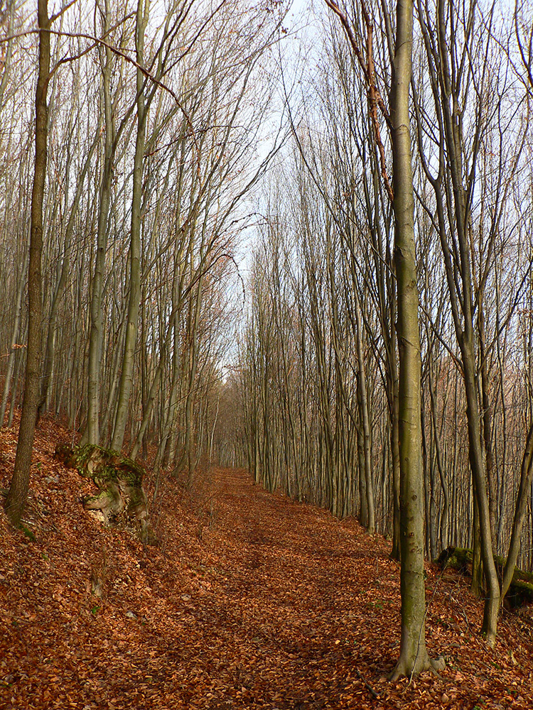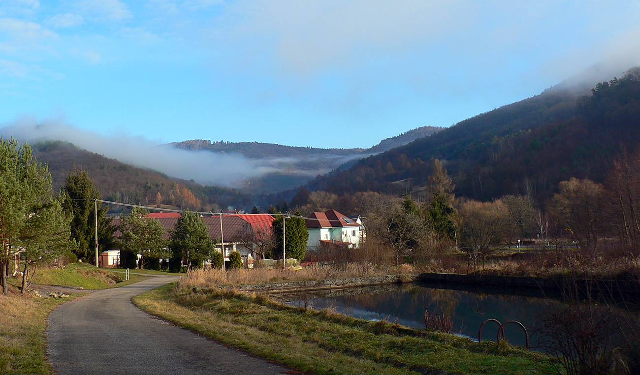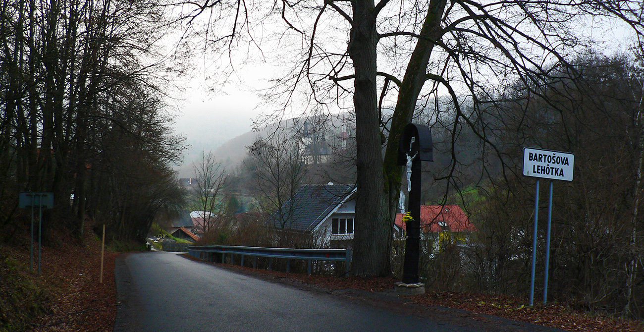Ale zatiaľ, na úvod, úloha č.1: do Dolnej Vsi. Nebudem sa predsa trepať po hlavnej... Z Bartošovej Lehôtky od OcÚ po lávke cez potok, skokom cez hlavnú, a už ma vedie cesta do lesa. Na prvej odbočke doprava a krásna, lístím vysypaná cesta holým lesom, ponad dedinu až do Dolnej Vsi. Fajn, toto vyšlo.