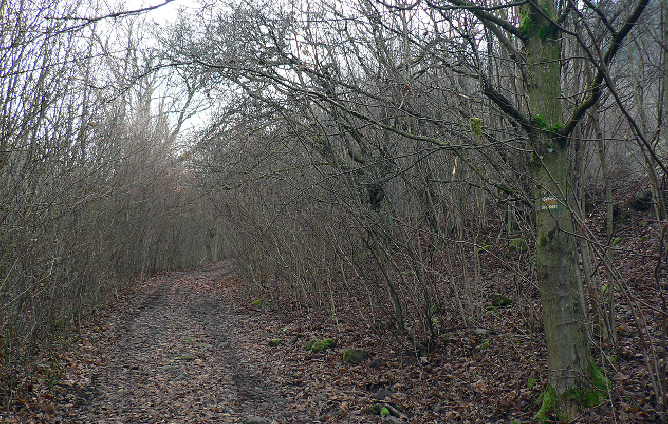 Tak úloha č.2: hore dolinou popri Švábskom potoku, trafiť žltú značku a s ňou sa vyplaziť hore do Nevoľného. Aj toto vyšlo, bolo len treba držať sa potoka. Aj keď niekedy sa jasná cesta stratila v kríkoch, zato hneď som našiel inú. Kadejaké pripotočné buriny už boli samozrejme poľahané, v lete by som tadeto radšej neskúšal preraziť. Potom už po žltej to bolo jednoduché, ponad železnicu a vynoril som sa na hornom okraji Nevoľného. Prišiel by som sem aj „vrchom“ cez Ďurov vrch po miestnej modrej značke, keby som o nej vopred vedel. V Dolnej Vsi aj pri vodojeme nad ňou som síce dáke značky zazrel, ale v Turistickej mape (hiking.sk) ničovaté nič, a ani na mapke hore v Nevoľnom, ktorú som mal odfotenú od minula. No chaos, ako som už písal. Motivácia nabudúce.