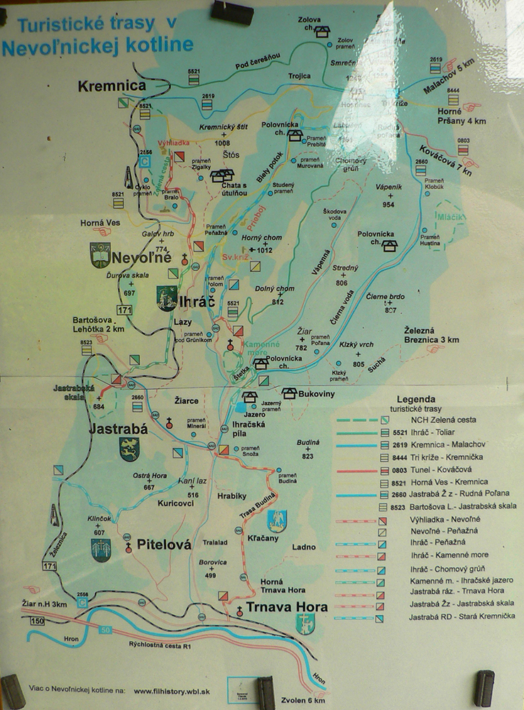 Nevoľnícka kotlinka je taká malá jama s troma dedinami na juhozápade Kremnických vrchov. Už koncom augusta som ju lízol pri mojich IMPROVIZÁCIÁCH , ale netrafil som všetko čo som chcel, tak nastal čas na reparát. Plán tentokrát znel: okruh z Bartošovej Lehôtky cez Dolnú Ves, Nevoľné, Peňažnú, Ihráč a Jastrabskú skalu. Z väčšej časti po miestnych značkách alebo mimo nich, ale deň mal byť krásny a ranná hmla sa mala rozplynúť – orientačne to nemal byť problém. Aj tak som radšej pribalil klasickú tlačenú mapu a poriadne zaostrenú pozornosť. Vo finále nepomohla ani jedna a tá sviňa hmla padla just popoludní, tak Jastrabskú skalu som netrafil už druhý raz. Ale musel to tam poriadny pako značiť, lebo taký chaos som ešte nevidel. Nakoniec takto (podľa https://sk.mapy.cz):