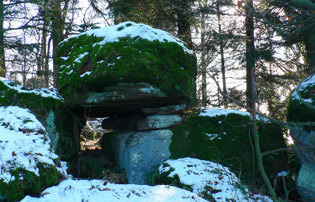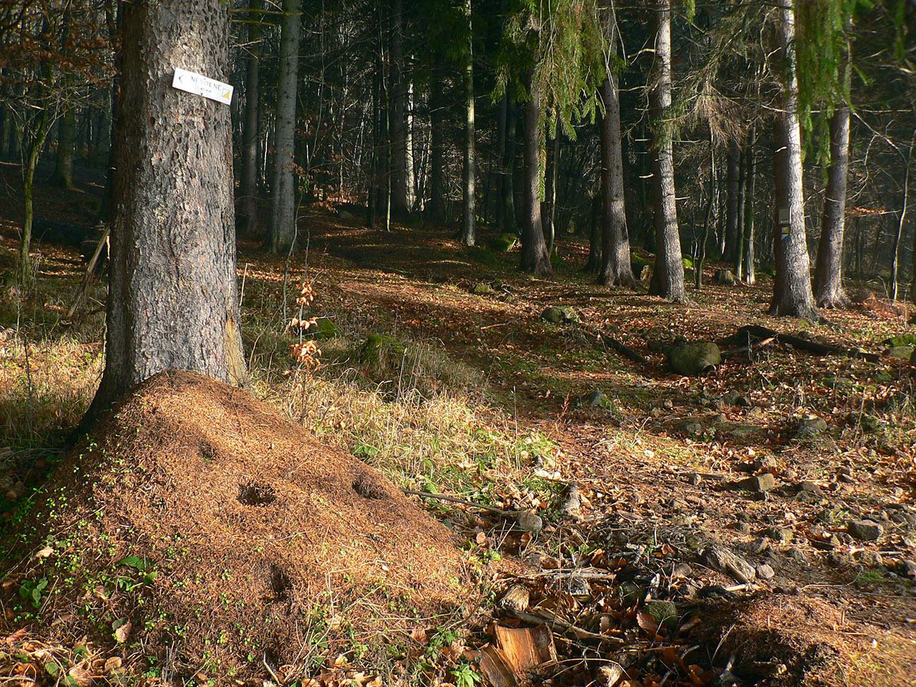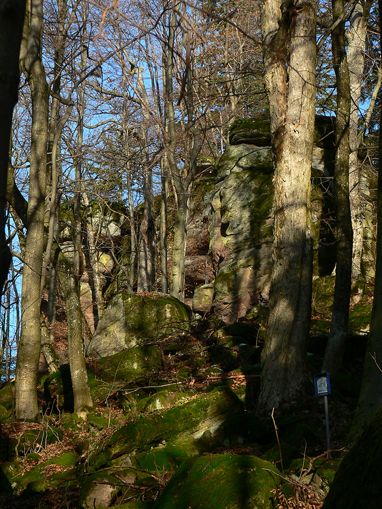 Potom už nazad dole na odbočku z doliny hore - ku krížu je to odtiaľ asi 50 minút, tiež dobre značených. S ďalšou odbočkou pri mravenisku :-) Záver strmší, ale cesta lesom ako z rozprávky, pomedzi veľké, machom obrastené balvany. A nad tým všetkým skalné mesto podobné tomu Prielomu dole v doline. Len nevkusné plechové stĺpiky krížovej cesty a hore ten kríž a ostatné „kostolné doplnky“. Nemôžem si pomôcť, ale toto sa dalo aj inde postaviť a radšej dôstojnejšie, nebolo treba práve takto przniť tú skalnú nádheru. Ale sa niet čo čudovať, keď je to tu všetko bez ochrany. Ktovie prečo? Na toto bude mať samozrejme veľa ľudí opačný názor, to je mi jasné, ale som si neodpustil :-)