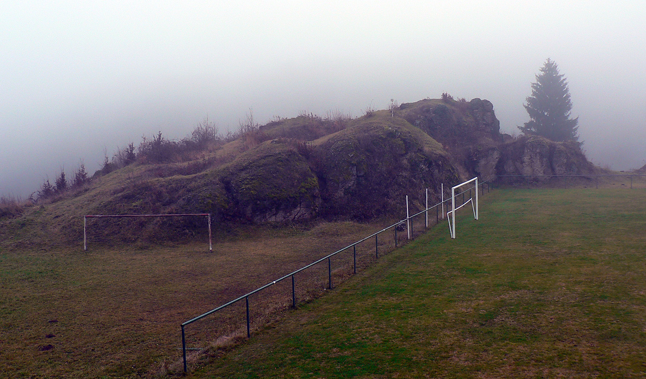 Ihráčske skalné more som už mal nacvičené z mapy, takže už žiadna zelená do kríkov ako naposledy, ale pekne dole dedinou a poza kostol. A aj tu krížová cesta - čo to tu majú za mániu takto využívať najcennejšie prírodné lokality v širokom okolí??? Ale vrcholky skalného mora tu slúžia aj ako tribúna pri zápasoch horskej ligy a ich údolia ako smetisko, tak ťažko vysvetľovať miestnym, aké tu majú prírodné poklady.