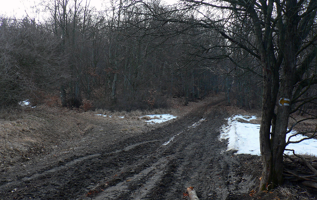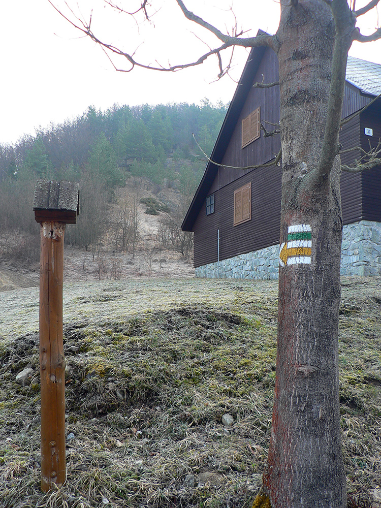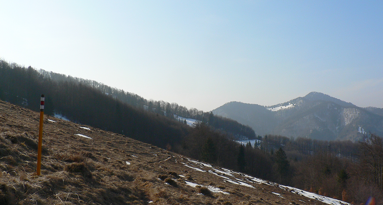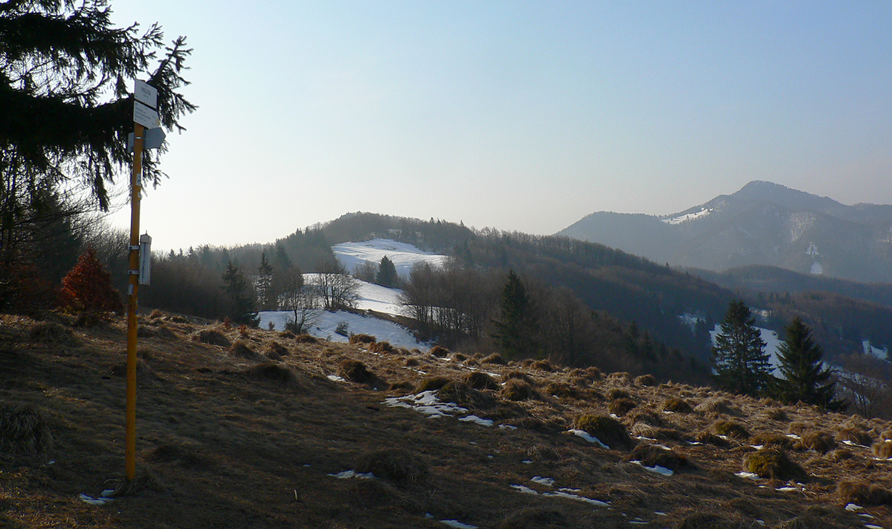 Pred Krpeľanmi konečne z hrádze preč, mostík cez kanál, o chvíľu cez Váh, trochu asfaltu Nolčovom a radikálna zmena: stena! Po hodine a pol na rovinách taká strmá žltá značka sa mi do cesty postavila, že až. Telu poriadnu chvíľu trvá, kým sa prispôsobí, lýtka pištia ešte ďalšie dve chvíle. Až na Maguru pekne cez špičky. Pod stromami blatnato, pod holým nebom zmrznuto pod nohami, hore betónový firn, ešte s pozostatkami stôp po lyžiach. Z holých miest sa na svet tlačia prvé šafrany.