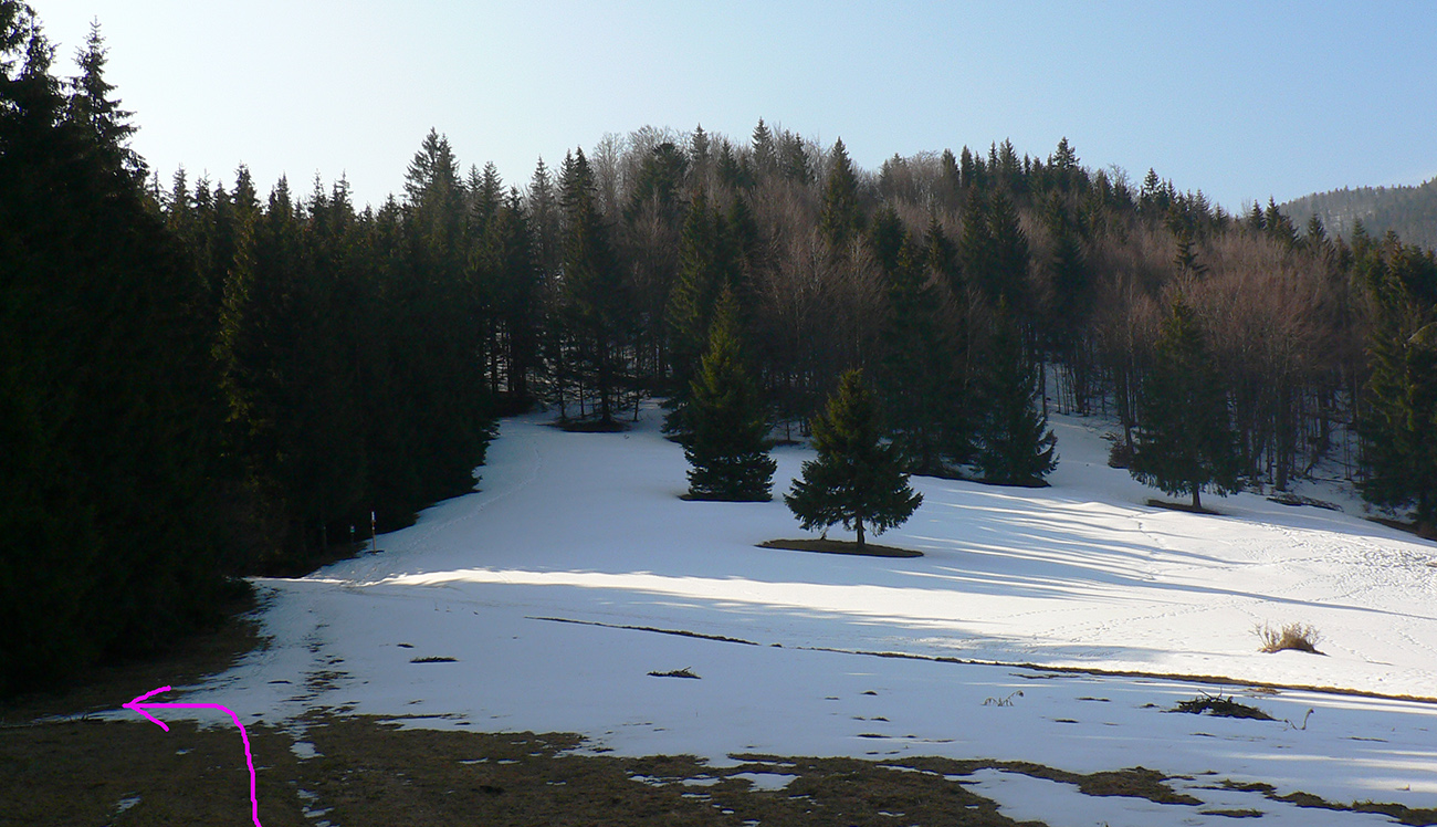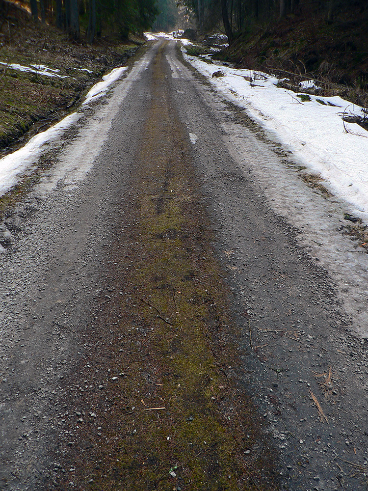 Nemal, nemal, ale nastal, no nie orientačný. Po odbočke z doliny do západných svahov ešte pohoda, po snehu ani chýru aj okolo tisícmetrovej vrstevnice. Nad chatou Plesnivá sa aj sklon upokojuje, tak aj dáke tie kalórie dopĺňam... A dobre robím, lebo ako sa cesta točí na severné svahy, zrazu stojím do pol lýtok v mokrom firne. A jeho hĺbka čím ďalej, tým väčšia. Staré stopy vedú po povrchu – hej, to keď to tu bolo na kameň, ale dnes už je „hlboká“ jar, sakra! Ani do medvedích stôp stúpať nepomáha, ani okrajom cesty sa predierať, za sedlom pod Červeným grúňom už som v tom po kolená – každý druhý, tretí krok. Nadávam potkýnajúc sa, potkýnam sa nadávajúc, až do Bystrej doliny ku smerovníku „Na jame“. A kúsok pod smerovníkom už zase pohoda a takmer sucho. Toto musela byť nejaká lokálna meteorologická zákernosť! Našťastie boty to zvládli s prehľadom, nohy v suchu.