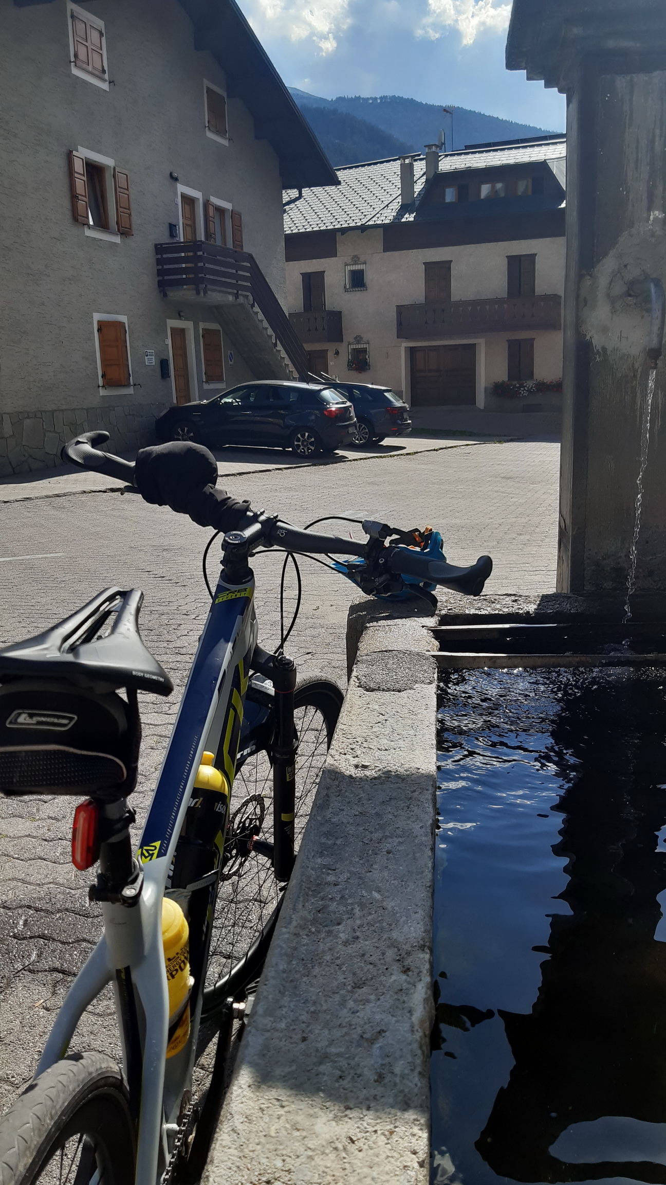 Hore prichádzam na pokraji kolapsu. Horúčava urobila svoje. Kupujem dve pollitrové koly, prelejem ich do bidónov, zmiešam s jonťákom, spravím pár povinných fotiek a začínam zjazd v smere do Bormia.