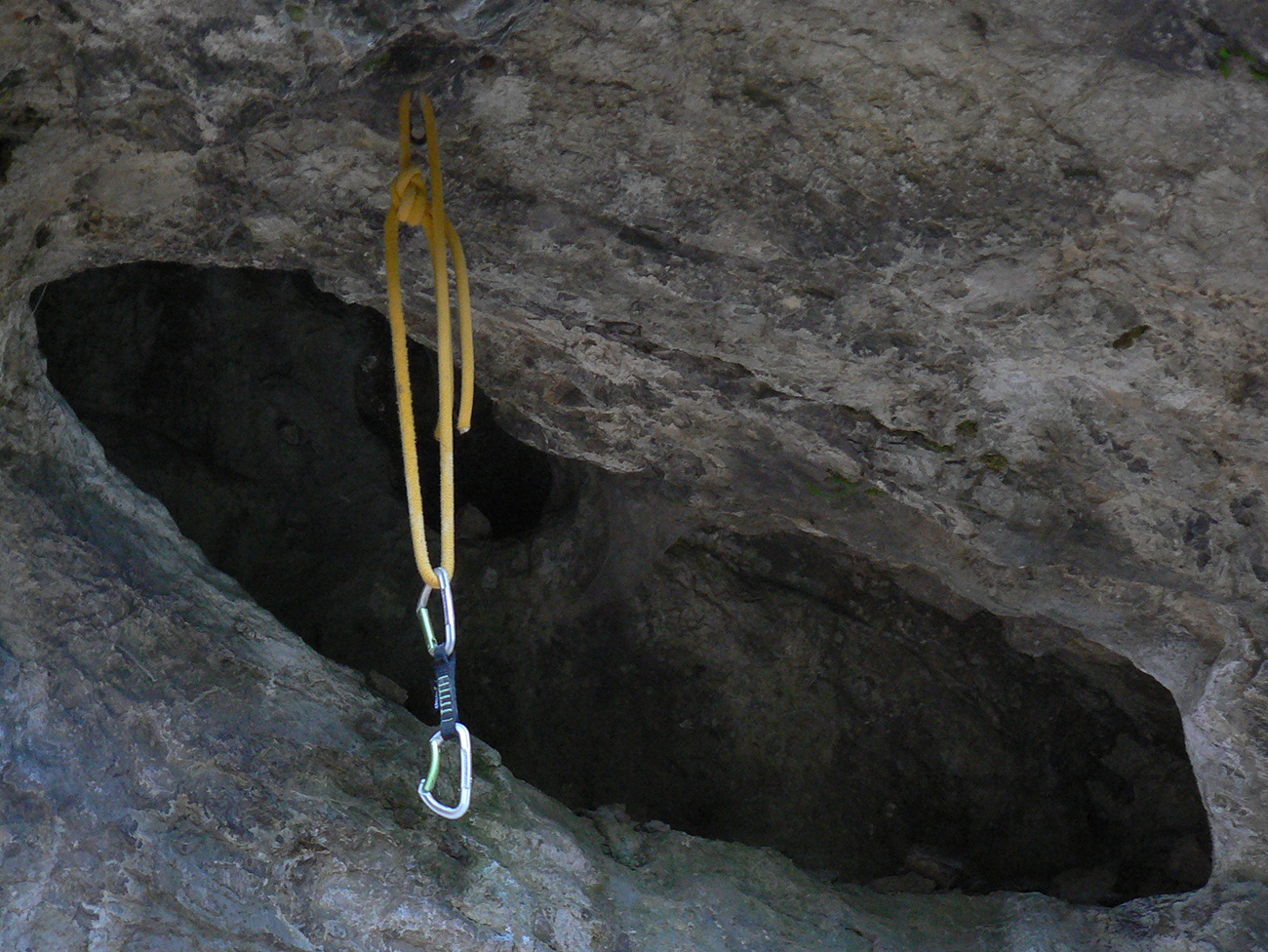 Dole dolinou len kúsok, minul som výjazd z bajktrailu Anakonda (TU) a o chvíľu už ma ťahala výrazná odbočka doprava, do starého lomu pod Hoblíkom. Na jeho začiatku zas doprava – ani tu sa nedá minúť odbočka z rovného do strmého chodníka, ktorý cikcakmi neomylne vedie hore, v ústrety bralám. A k nástupu do cvičnej ferraty, ktorej železo je ale zavesené dostatočne vysoko, aby nevybavených náhodných okoloidúcich veľmi nelákalo štverať sa hore. Aj pokyny na ceduľke hovoria jasne. Na vyhliadku nad ferratou sa dá dostať samozrejme zhora po chodníku.
