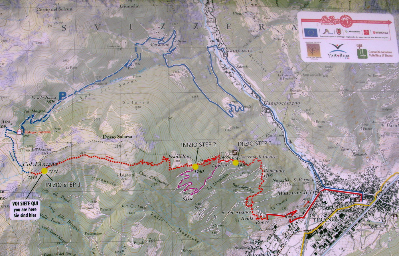 Val Poschiavo - Švajčiarsko. Nachádzam sa neďaleko Šv.-Tal. hranice. Kúsok ďalej dole údolím by som zachvíľu prišiel do talianskeho Tirana. Popri Bormiu a Sondriu jedného z hlavných centier Valtelliny.