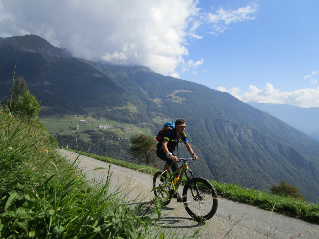 Pomedzi nekonečné jazdenie občas zastavujem obzrieť výhľady do údolia. Tirano sa približuje. teplota stúpa. Zmrzlina sa blíži. Druhý Valtellinský superzjazd končí na vetromagu.
