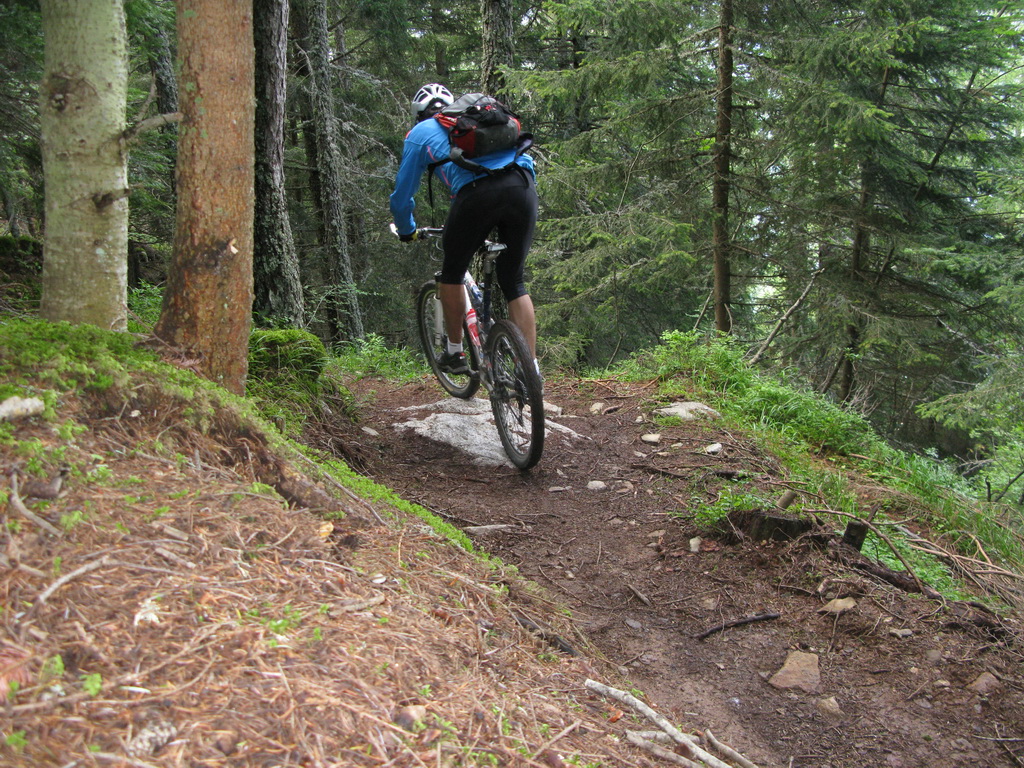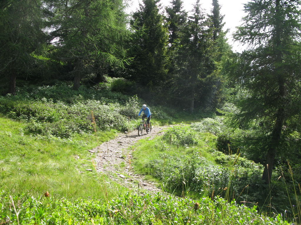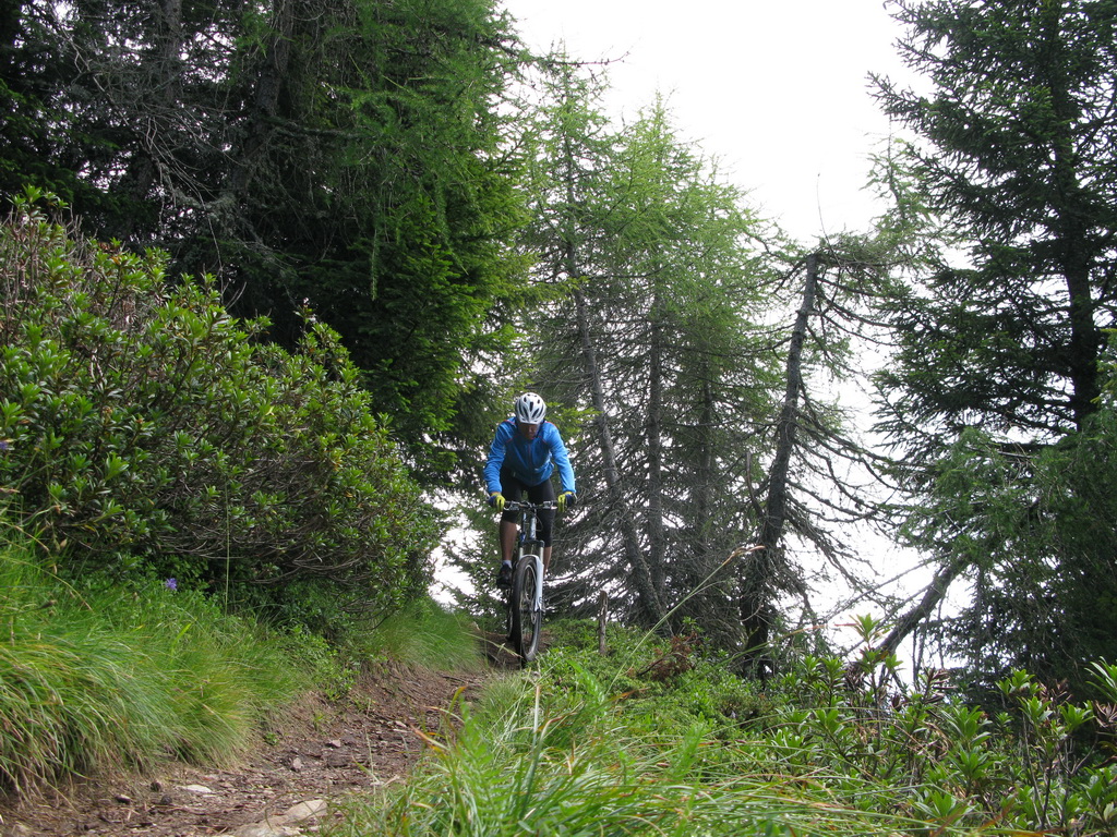 Potom už nasledoval vyznačený zjazd rôznorodým terénom až dole do údolia Valtelliny. Pekné úseky striedali menej záživnejšie, tento výlet sa rozhodne nedá porovnávať s vysokohorskými túrami napríklad v okolí Stelvia ale vzhľadom na daždivé počasie to bola pre mňa dobrá alternatíva.