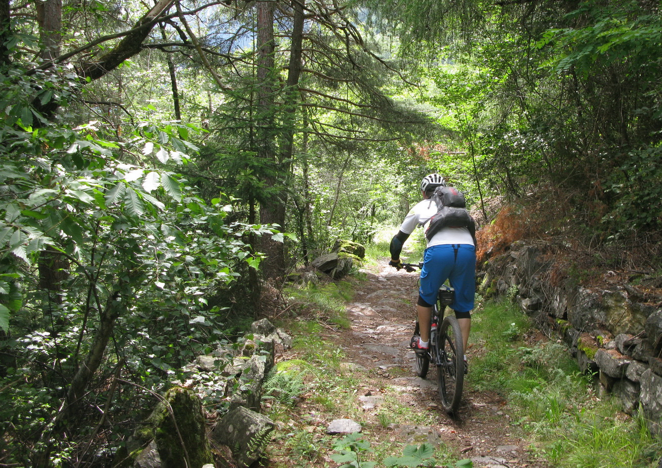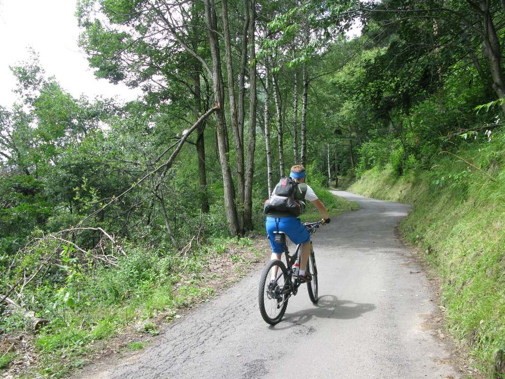 Odtiaľto už vyrážame na bajkoch. Mostom ponad rieku a hneď za ňou doprava. Po úzkej asfaltke pomedzi domčeky a sady až do Vervia. Tu sa začína naše stúpanie. Po asfaltových serpentínach prevažne v lese stúpame až k usadlostiam Susen. Tu sa už otvárajú parádne výhľady. Doplňujeme vodu ktorá tečie prakticky pred každou usadlosťou a šlapeme ďalej smer Rifugio Schiazzera.