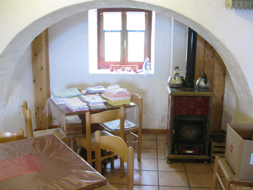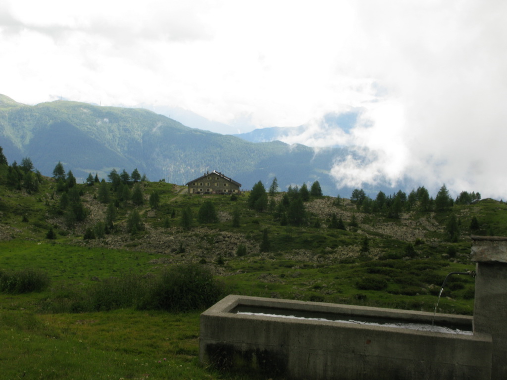 Nad parkoviskom vedie strmá cestička vydláždená kameňmi. Tu už musíme tlačiť. Nie sme však ďaleko od chaty. Na chate je len partia domácich. Žiadny turisti, počasie aj tak nie je nič moc. Dávame si polievku a ideme ďalej. Polievka so syrom a chlebom stojí síce 5 euro ale ceny ubytovania nie sú väčšie ako na tatranských chatách...