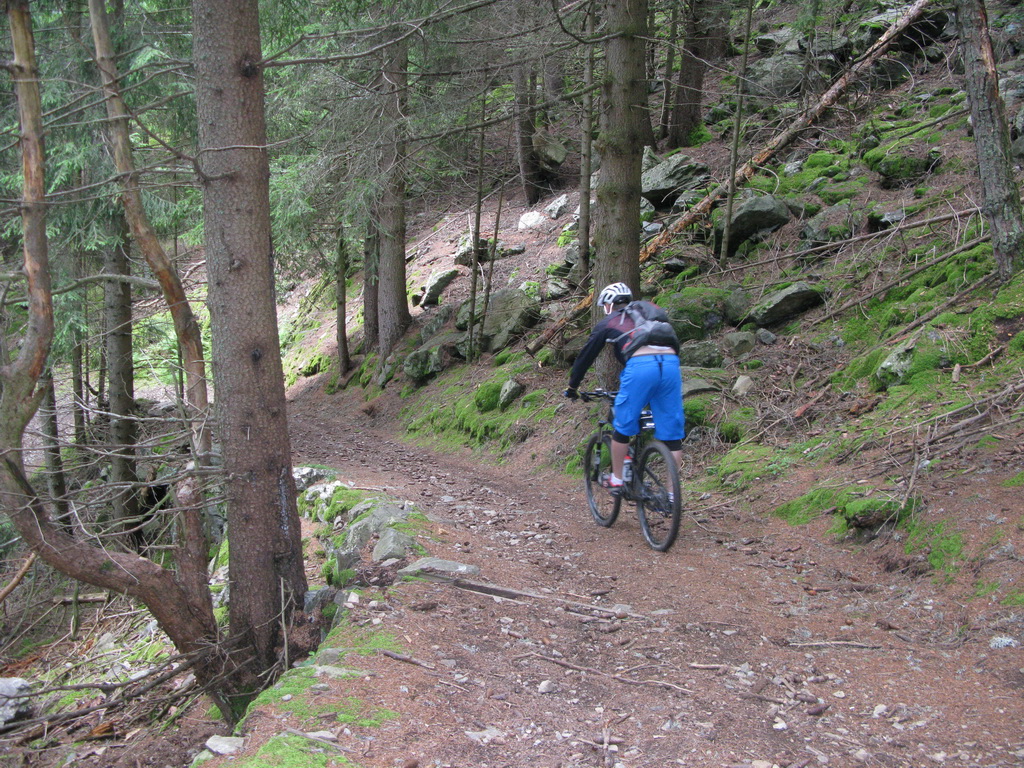 Nás dnes však poteší aj zjazd do Tirana z odbočky nad chatou Schiazzera. Čaká nás vyše 1700 výškových metrov zjazdu po všetkých možných povrchoch. Počas zjazdu musíme robiť prestávky, ruky už miestami nevládzu držať brzdy :)