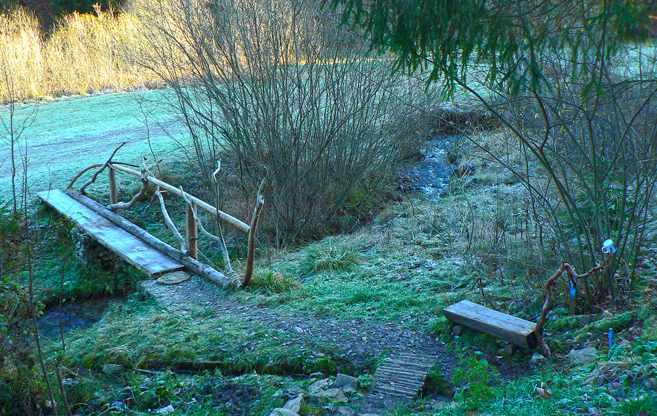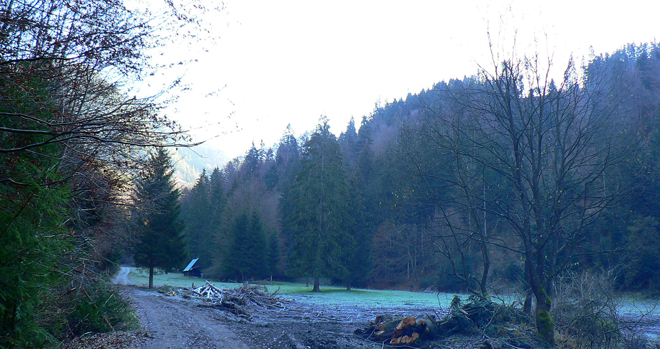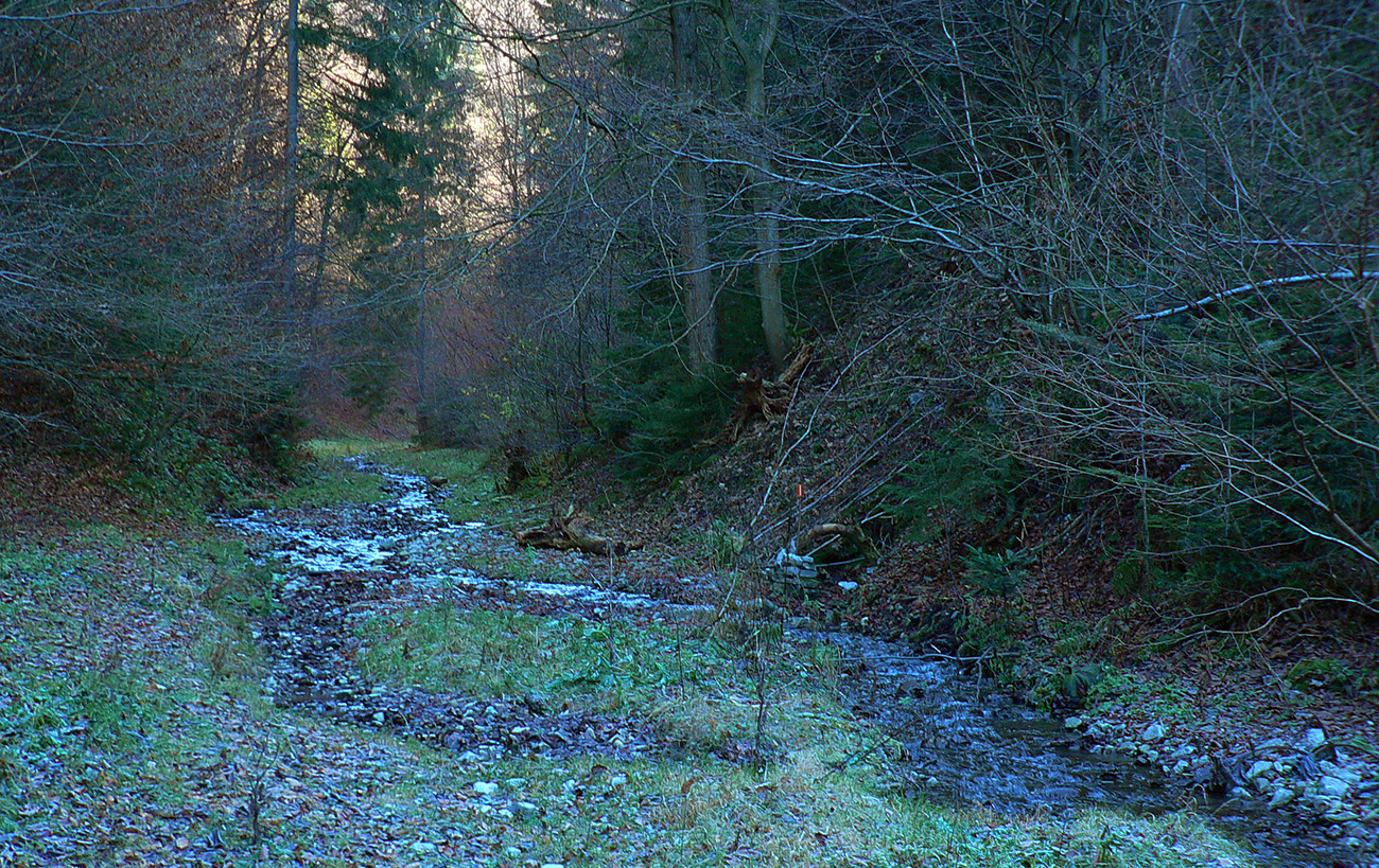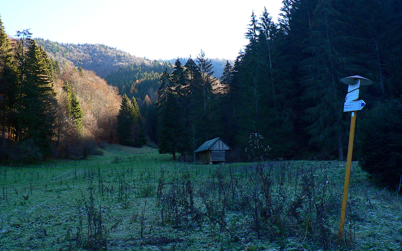Takže: z dediny je to na Kľak jednoduché, po modrej. Len od konca asfaltky som dočasne tou modrou pohrdol a skúsil to priamo prielomom potoka. Práve preto, lebo v lete by som sa tu utopil v mori žihľavy a lopúchov. Teraz už bolo všetko zľahnuté a čerstvý nočný mráz aj blatá vysušil a podklad trochu spevnil. No, dalo sa, prielomček pekný, aj dáke bralká a jeden vodopádik – trpaslík, ale nič svetoborné.