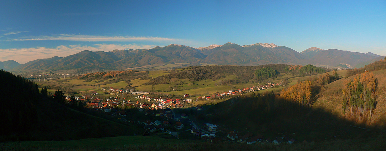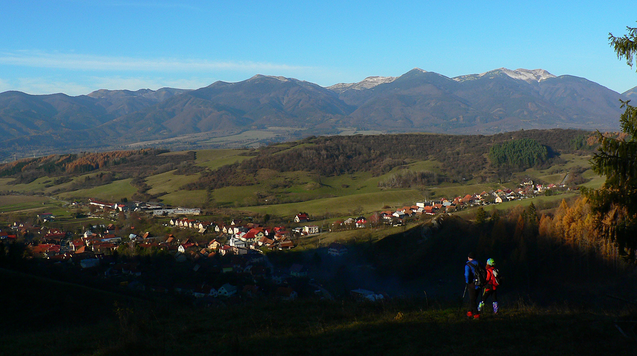 No a na záver som zase pohrdol značkou a z hradu dole do Podhradia som sa spustil „direttissimou“. Jednoducho som pokračoval rovno lesným priesekom tam, kde sa pod hradom zelená točí prudko doľava. Vypľulo ma to na hornom konci bývalého „obecného vleku“, odkiaľ je nádherný, panoramatický výhľad na Krivánsku Fatru. Hneď nad dedinou. Viac povedia fotky.