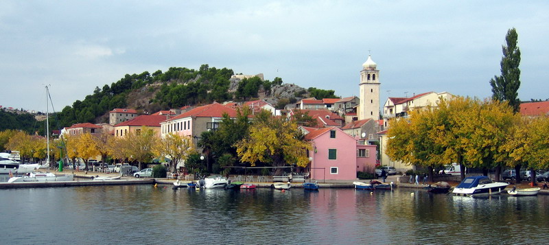 Po prehliadke vodopádov sme sa tentoraz už poučení odviezli loďou do Skradinu. Aj v októbri premáva každú hodinu. Skradin je malé starobylé mestečko, ktorého prehliadka vám nezaberie veľa času. Je tu aj viacero reštaurácií, ale nedá mi nespomenúť, že cenami v reštauráciách už Chorvátsko dávno dobehlo západ...