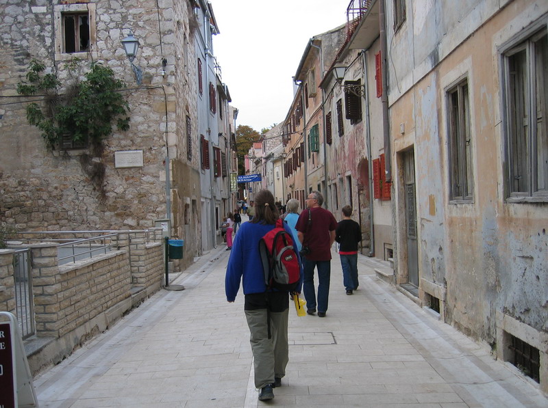 Aj napriek zamračenej októbrovej oblohe tu bolo turistov dosť, rozoznali sme Španielov, Japoncov a chlapíci s divnými bradami a čiapočkami na hlavách boli asi z Izraela. V špičke sezóny by som tu teda nechcel byť. Ináč pozor na toto: počas škaredého počasia pri mori mnohí volia Krku ako alternatívny program a preto tu môže byť práve v zlom počasí plno.