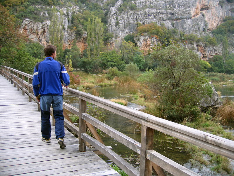 O dva dni nato vyrážame z našej základne pri Zadare na prieskum horného toku rieky. Vďaka diaľnici sme za necelú hodinku pri Skradine a púšťame sa po cestách tretej triedy na orientačný výlet autom. Vďaka novému značeniu sa nám darí nezablúdiť a blížime sa k Rošskému slapu.