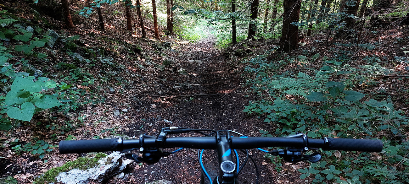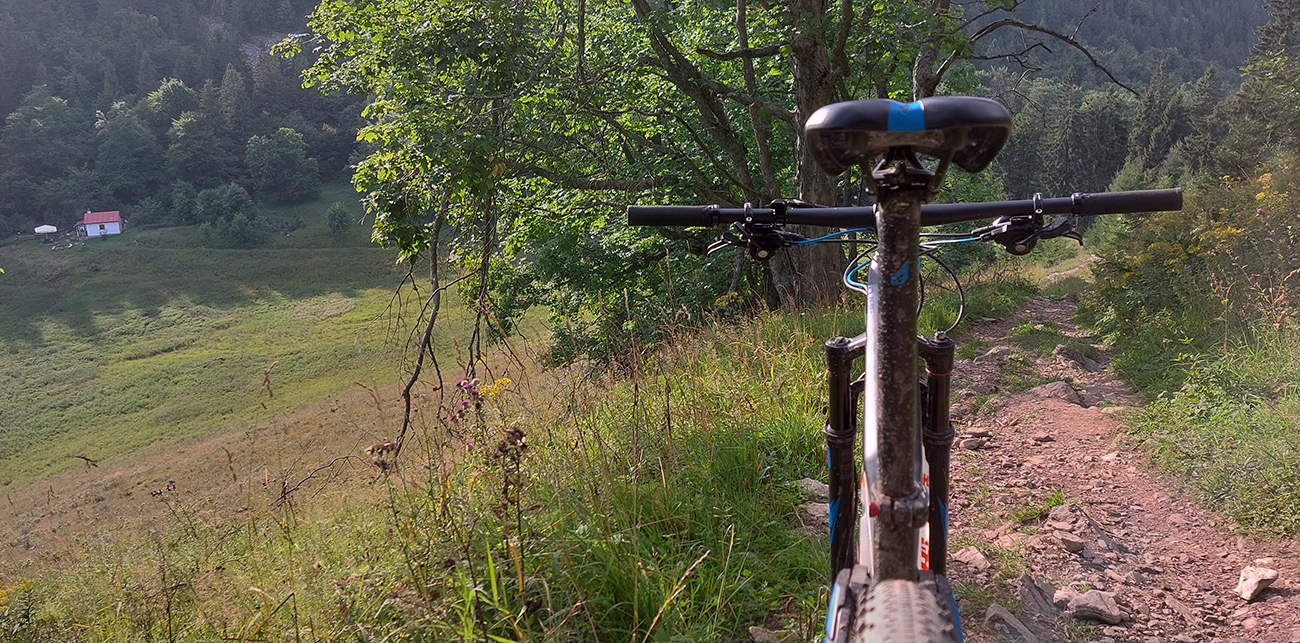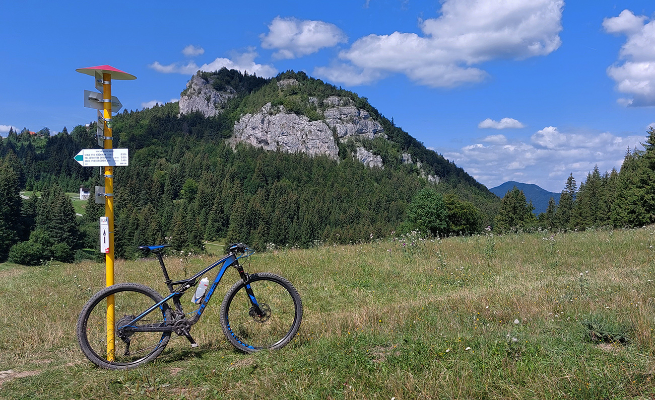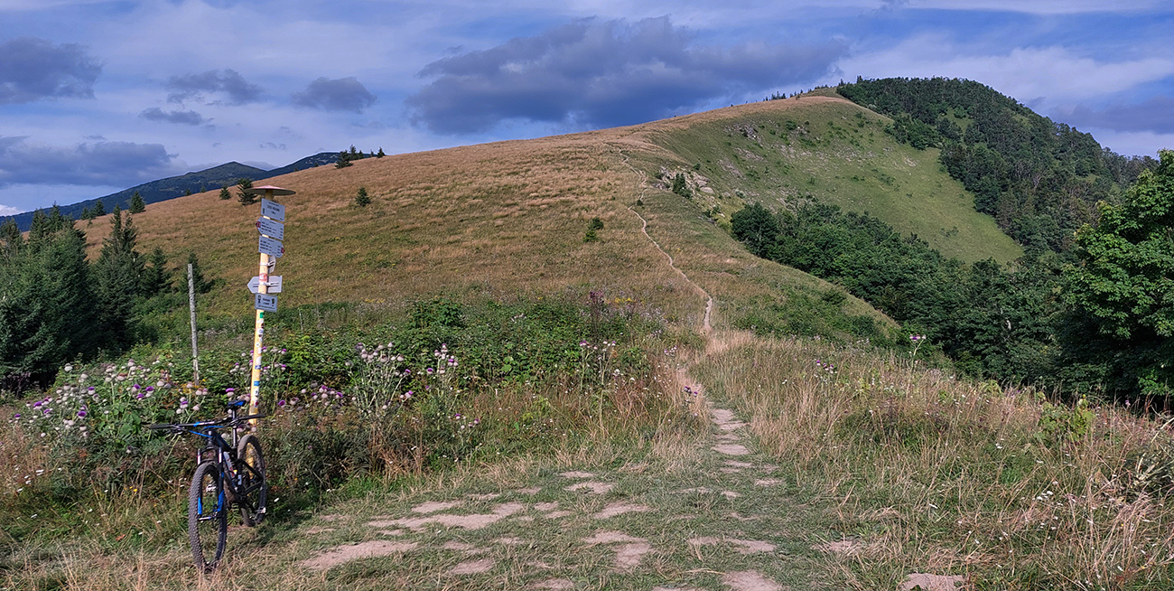 Smerom na Donovaly je ešte zopár krátkych úsekov hore aj dole kopcom, ktoré ani po vlastných nie sú pohodlné, najmä kvôli množstvu voľných kameňov. Ale jazdiť s trochou citu sa to dá, nič zložité. Potom už pod kolami hlavne hlina. Pred Poliankou som samozrejme odbočil doľava, načo zachádzať? Po chvíli som si mohol pod Hrubým vrchom už naplno užívať rozhľady z lúk, najmä na blížiaci sa Panský diel. Kto pozná chodníky medzi Donovalmi a Šachtičkami, vie o čom hovorím. Kto tam ešte nebol, vrelo odporúčam: pekná krajina, dobré cesty a veľa možností.