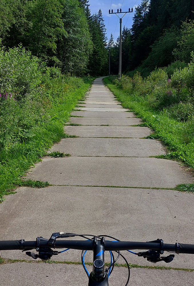 Aj z Osady by sa dala hlavná cesta obabrať – cez Liptovskú Lúžnu na Patočiny a odtiaľ poza Fedorku až nad Korytnicu. Chuť by aj bola, ale začal ma čas tlačiť, tak nabudúce. Každopádne po trase bývalej lesnej železničky - Korytničky to bola tiež príjemná jazda, až na ten hukot z cesty. Ale aspoň som sa niečo o histórii dozvedel a za jazdy niečo pojedol. Celkom dobre mi padol oddych na rovinke pred posledným dlhším výjazdom.