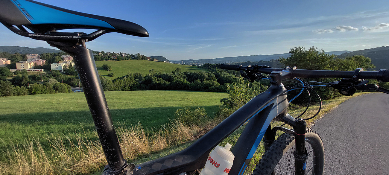 Smerom na Šachtičky je to prevažne z kopca a dobrá cesta. Navyše ma niesla kofola aj záverečná eufória z vydareného dňa, tak som si to švihal veselo a rýchlo. Až tak, že som kdesi zase cvakol dušu. Po tom prvom defekte som ju nenafúkal dosť – tou mojou príručnou pumpičkou to ani veľmi nejde. Našťastie život z nej tentokrát unikal pomaly, tak zo dvakrát som ju dofúkol a v pohode došiel, lebo na záverečnej asfaltke dole zo Šachtičiek to už veľmi nevadilo. Ale aj ponad Sásovú som švihal ešte poriadne, lebo neplatená verzia Relive berie len záznamy do 11 hodín :-) Tak som zastavil hodinky na hodnote 10:57 tesne nad mestom, nech je reku nejaká rezerva. Výsledok je tu nižšie a samozrejme na fotkách v galérii. Parádne pojazdenie to bolo!
