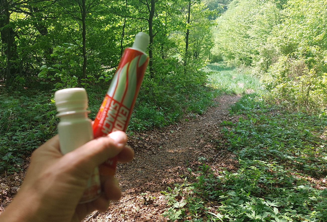 Na Kráľovej studni (22. km) tankujem do brucha aj do fliaš čo to dá, lebo najbližšia voda bude vraj až na 52. km, v sedle Cigeľka. Zatiaľ ale stačí, osobne nemám veľkú spotrebu vody, navyše počasie mám ideálne. Ráno bolo zatiahnuté, ale po vlhkom a teplom týždni začal fúkať poriadny severák. Hore v korunách poriadne hučí, mňa dole akurát dobre ovieva, a ešte som aj v tieni. Len keď ma občas vyhodí na lúky, cítim silu slnka. Hlina pod nohami v lese je ale taká akurát, nelepí ani sa nepráši.