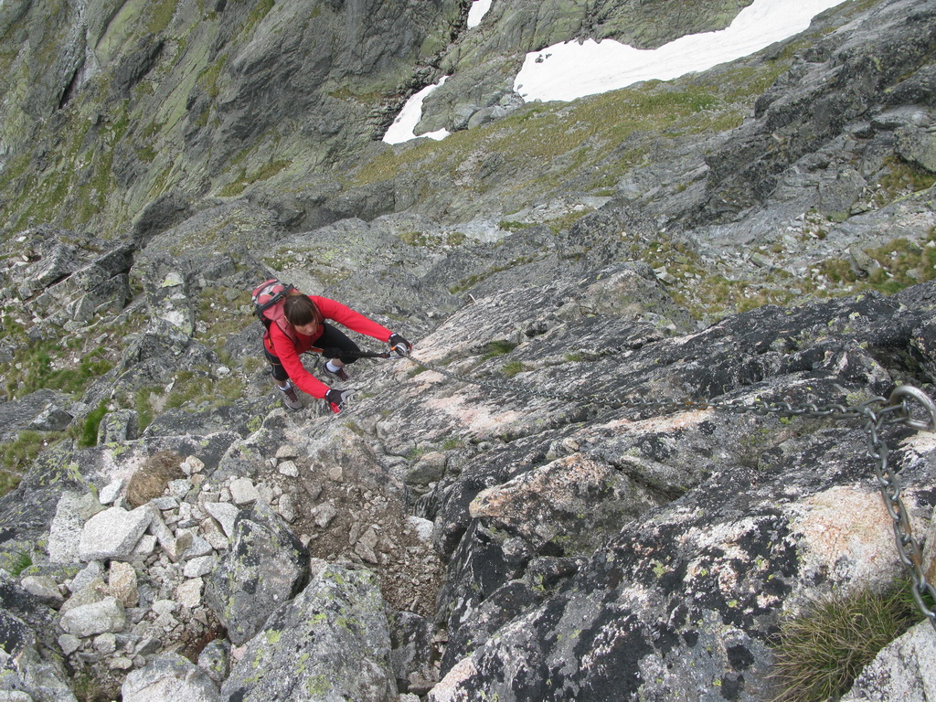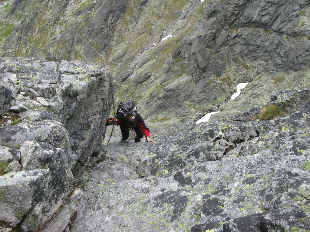 My sme si vybrali túto reťazami a kramlami zaistenú ferratu v jeden nie moc pekný júnový deň. Naším cieľom bolo z Malej Studenej doliny vystúpiť do Téryho kuloáru chodníčkom slúžiacim k nástupu na lezecké túry. Tu sme už na seba obliekli sedačky s feratovými setmi a vystúpili sme ferratou smerom hore na úbočie nad Lomnickým sedlom. Počasie nebolo vhodné na lezenie, tak sme aspoň takto dali pekný a zaujímavý okruh.