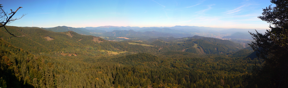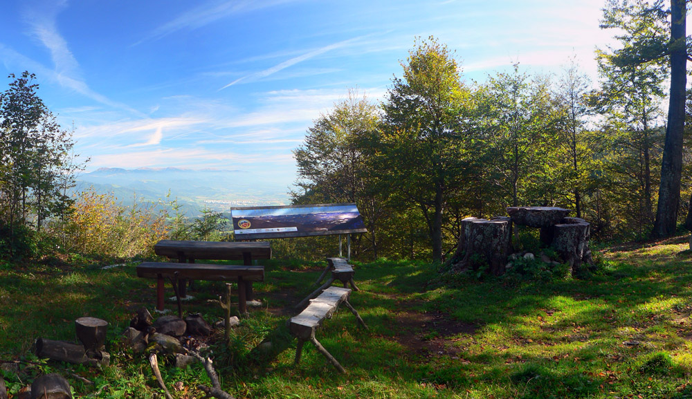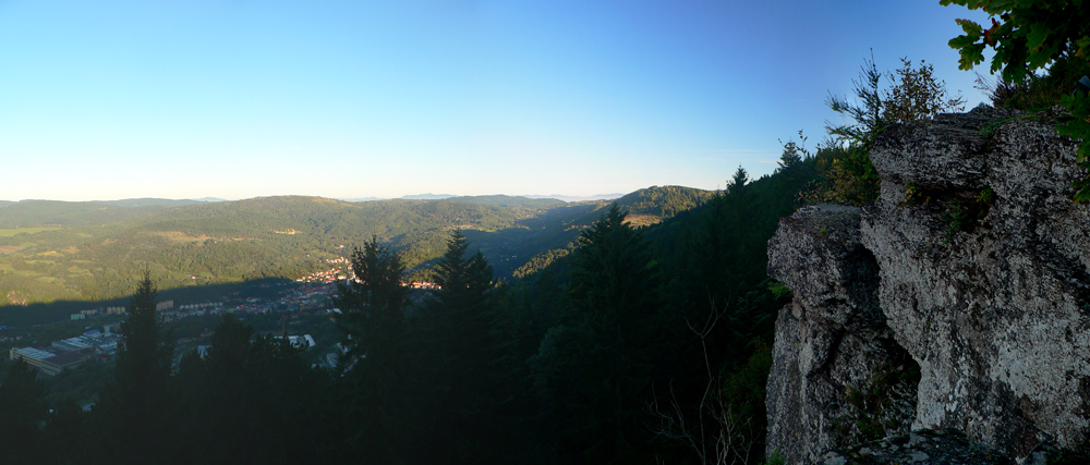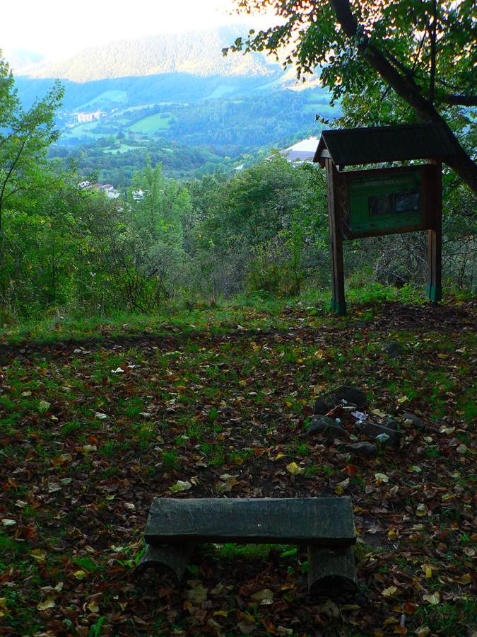 Hore poobzerám, či nejaké rúny nepribudli, ale jediné čo je tu navyše, je pár plastových fliaš a obvyklého bordelu. Aj okolo sedení na Troch krížoch, veď ako inak? Pod trojkrížom je zas vyhliadka, ale taká „sofistikovanejšia“, aj s panoramatickou fotkou a popismi. Odtiaľto je ako na dlani Banská Bystrica, v ďiaľke na obzore sa dokonca belejú premiérovo zasnežené Roháče. Aby sa nepovedalo, že smerom na západ nič, tam vidno vďaka rúbanisku Vtáčnik.