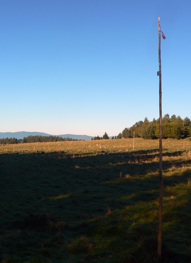Pod Košiarmi ešte kratučká zachádzka k pamätníku sovietskych letcov a to už sa pomaly vynáram z lesa na lúky a pasienky, smerujem do Horných Pršian. Výhľady zas pribúdajú, najlepší je od vysielača nad dedinou. Je tam aj prístrešok, príjemné by bolo posedieť, nebyť toho elektrického bzukotu.
