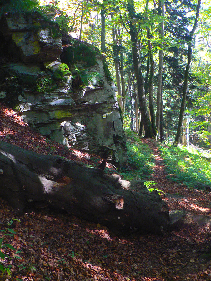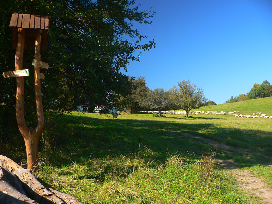 Z horného konca dediny sú dve možnosti: oficiálna po žltej a po asfalte, krajšia po pasienkoch „severným obchvatom“ dediny, popri ďalšom vysielači. Ovčie cestičky povedú :-) Treba len trafiť autobusovú zastávku pod dedinou, tam žltá odbočuje z hlavnej doprava k ovčínu a za rampou doľava dole, do lesa. Posledný úsek vedie zväčša príjemne lesom, len okolo napájadiel, kde už sa dlho nepasie, je žihľavy a bodľačia až až. Posledná zachádzka sa oplatí, lebo je tam, predstavte si, ferata!!! Síce taká cvičná, krátka, ale... Pekné cvičné skalky a pekný chodník popri nich, dá sa naň napojiť zo žltej značky na dvoch miestach. Potom už len farebný lesný tunel s čoraz širšou cestou, v ústrety približujúcemu sa štekotu strážnych psov a hluku rýchlostnej cesty. Vynáram sa v Kremničke, velím vľavo vbok a mašírujem k trolejbusovému depu na zastávku. Taká príjemná prechádzka - jednosmerka to bola, odporúčam.