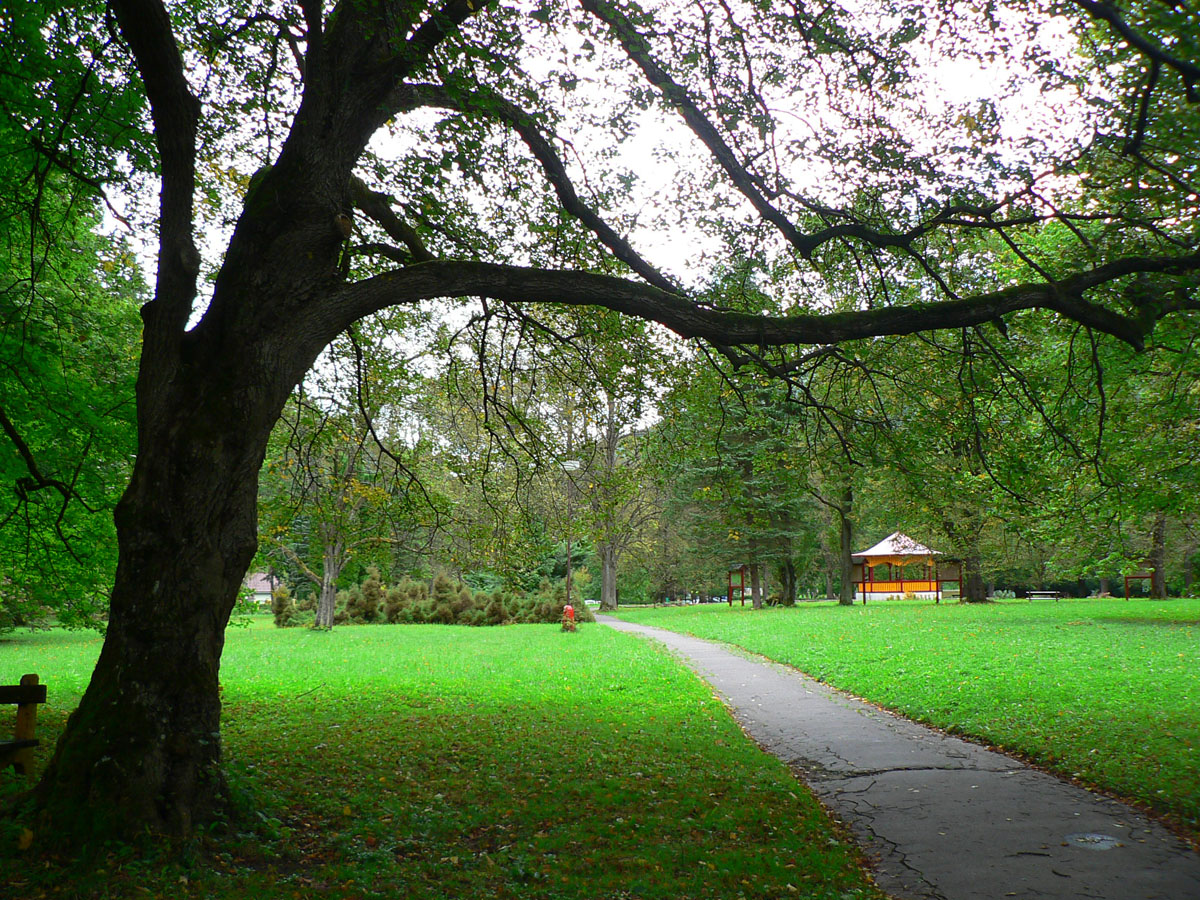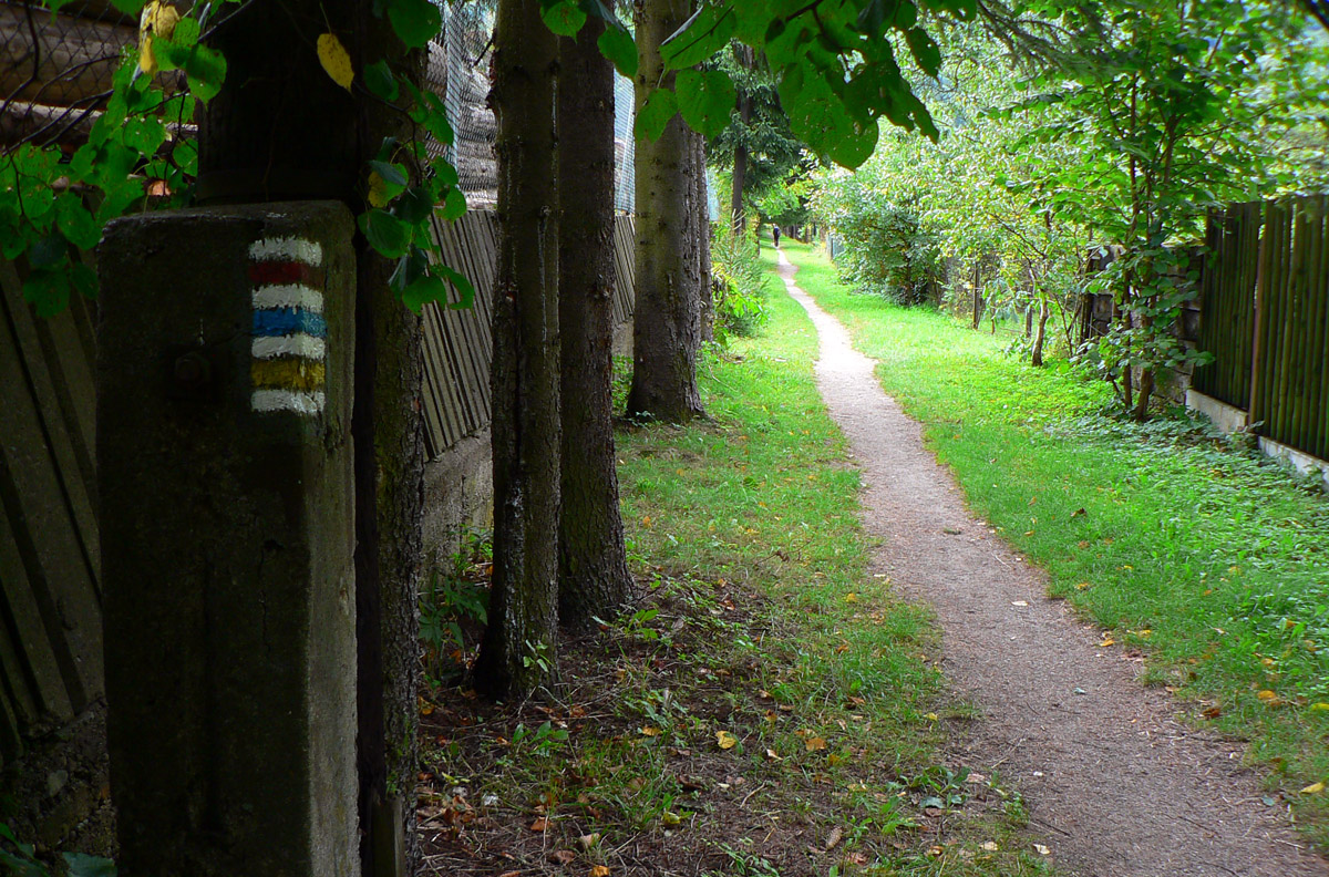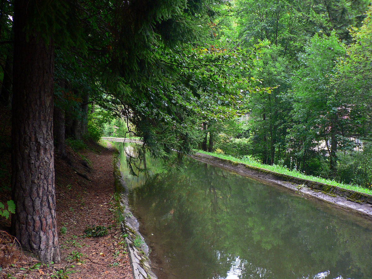 Popri kanáli je to príjemnejšie aj krajšie ako po asfaltke, nechápem prečo značka nemôže ísť tadeto. Chodník tu je. Aj okúpať by sa dalo :-) O chvíľu budovy malej elektrárne, na rozdiel od dnešných „ekologických“ sú tu veľmi vkusne zapasované do krajiny. Potom už len cez mostík do parku a okruh je uzavretý, už len sa poprechádzať po kúpeľoch...