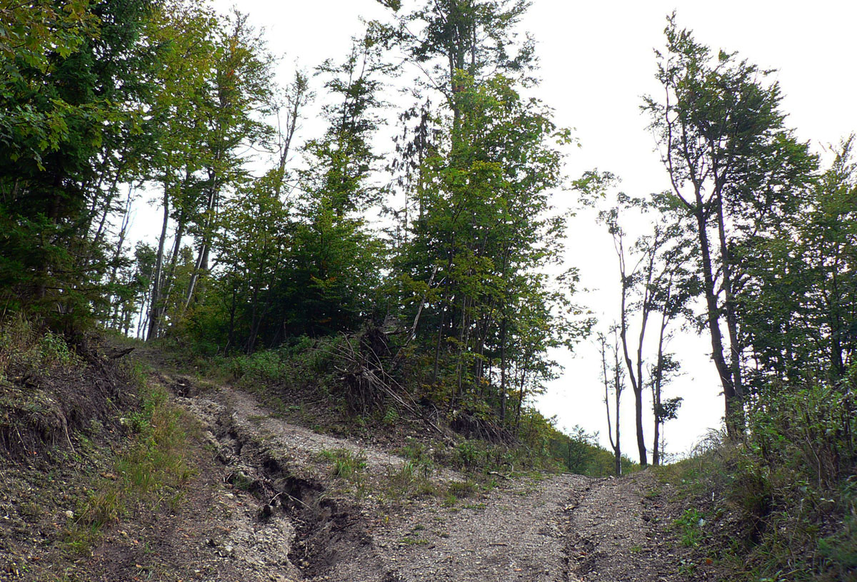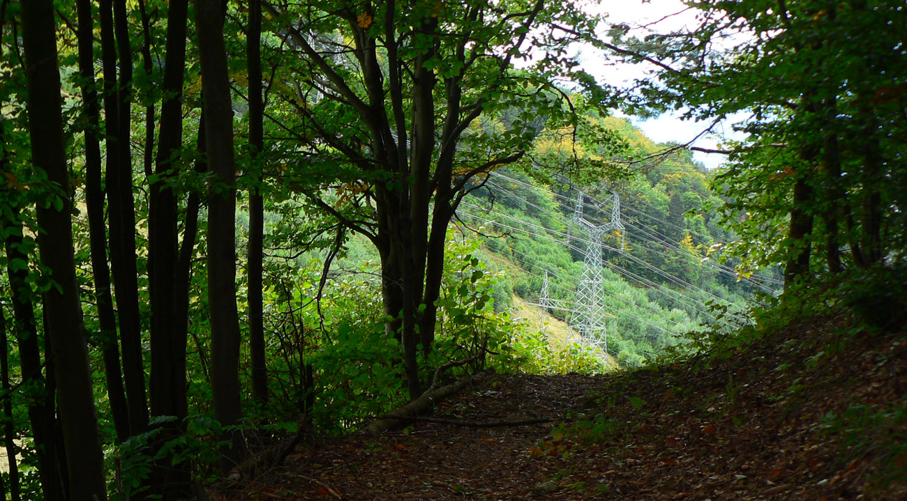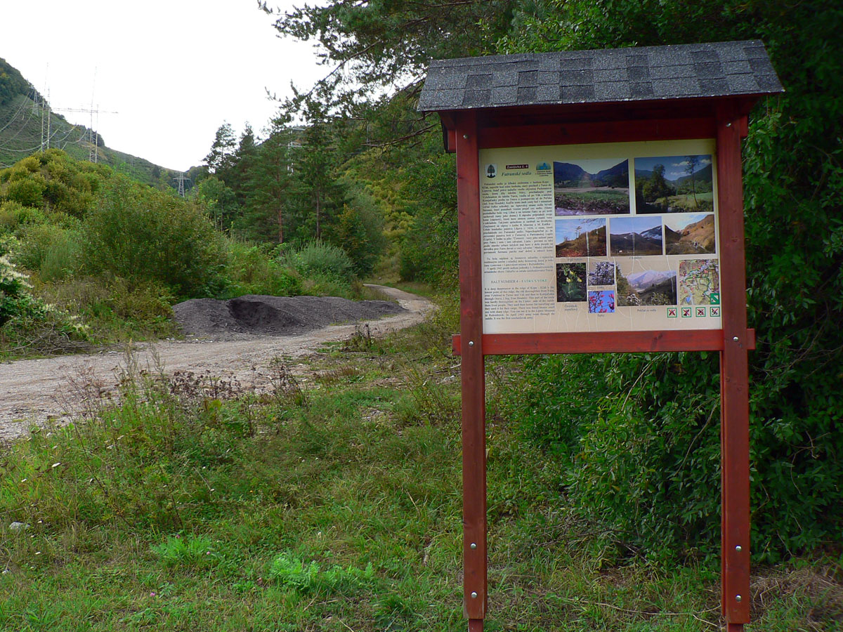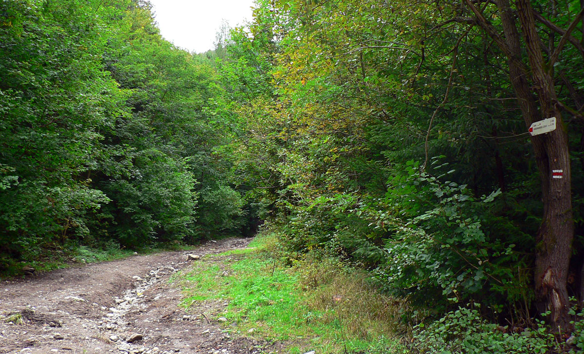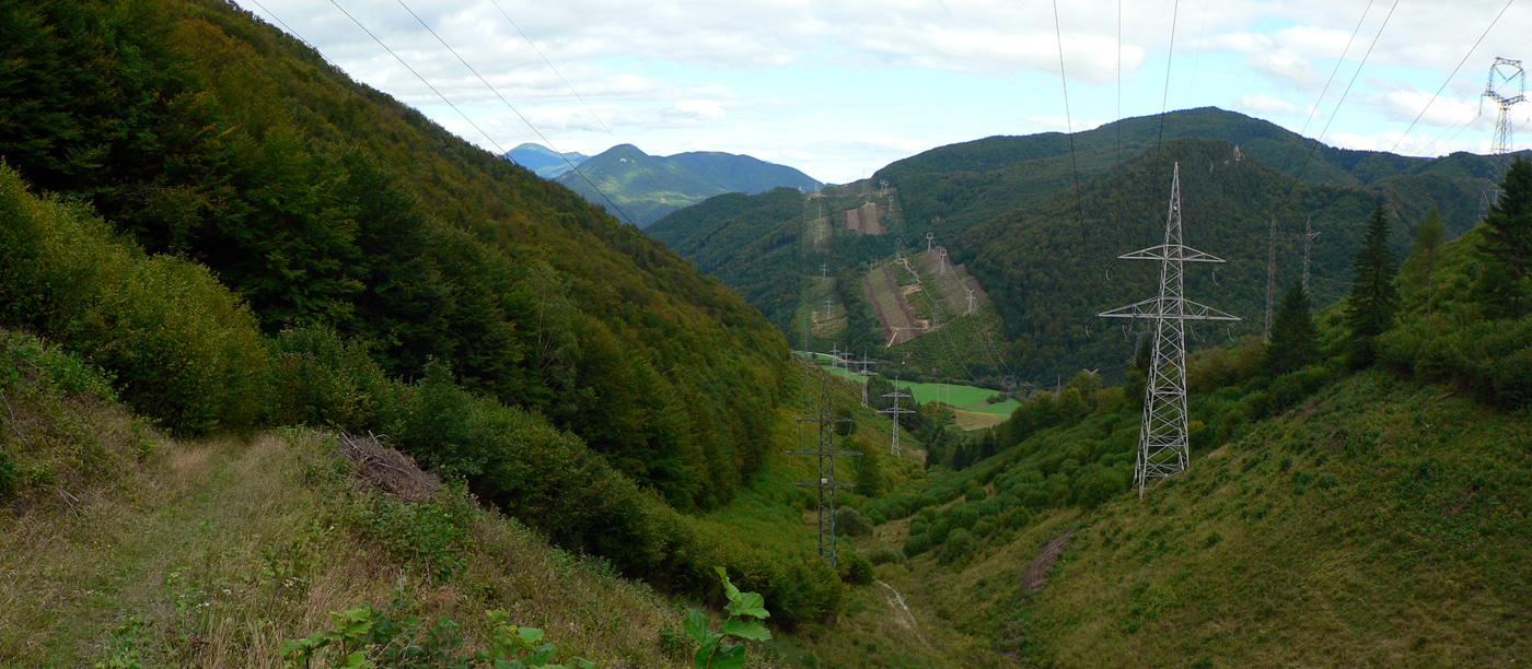 Ľubochnianske sedlo, to je kríž, smerovník, ale aj bzučiace drôty, betónová cesta, vyholené svahy, no fuj! Aj zostup do doliny začína vlhkým, blatistým výmoľom. Kedysi ale práve tadeto (a nie dolinou Váhu) viedla stará obchodná cesta od Jadranu cez Turiec na Liptov a ďalej až k Baltu, ktorú používali vari už Rimania.