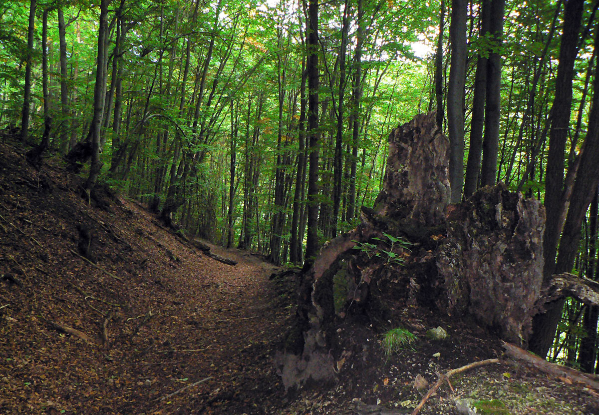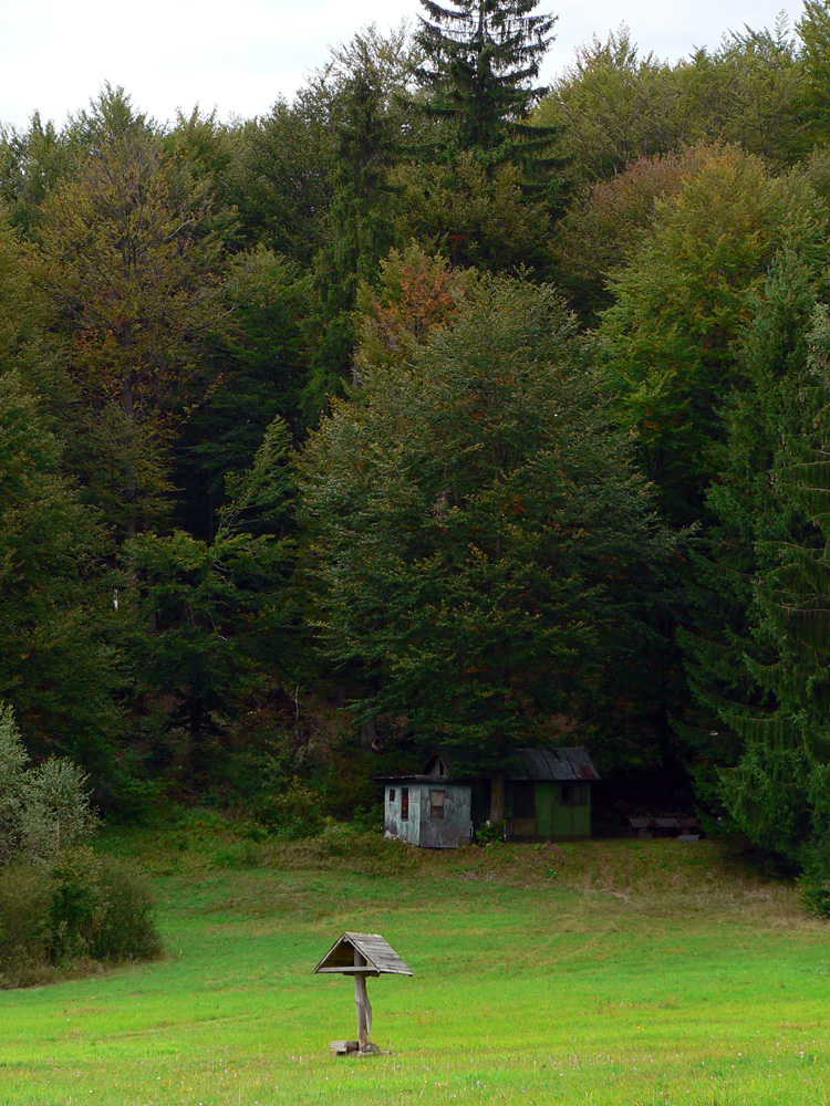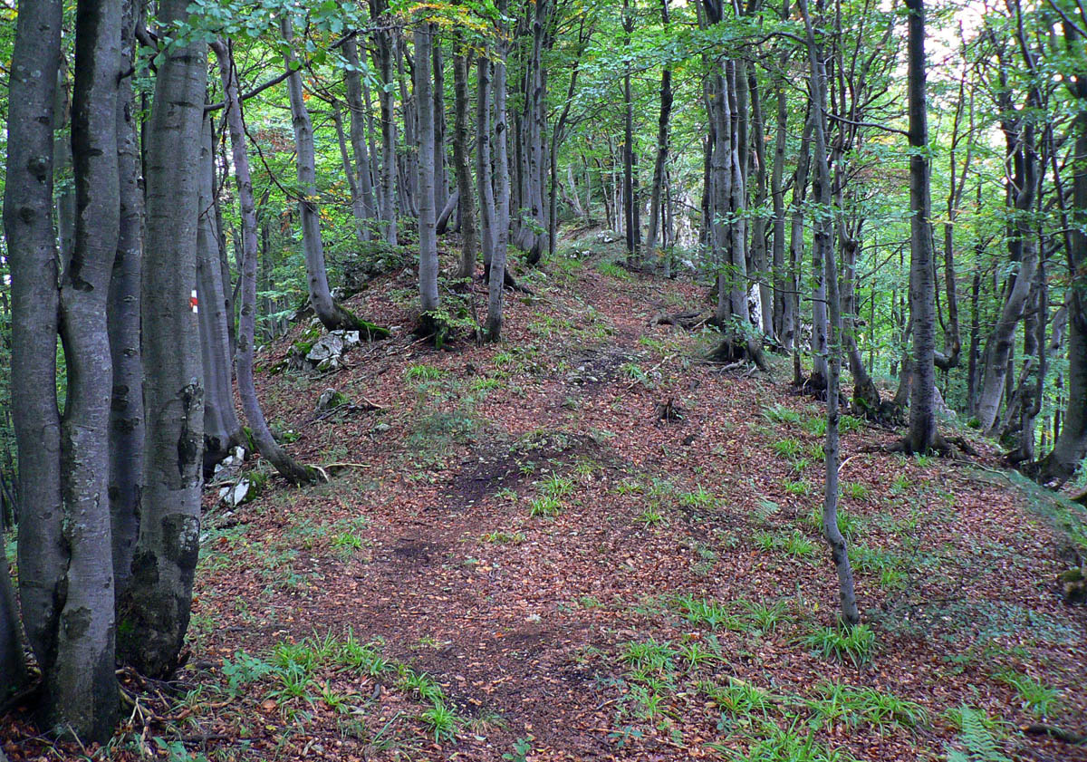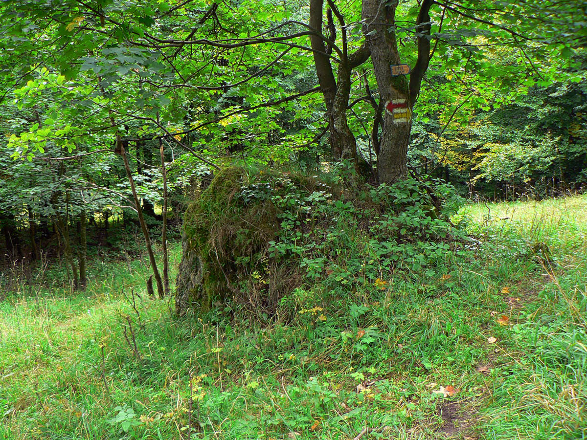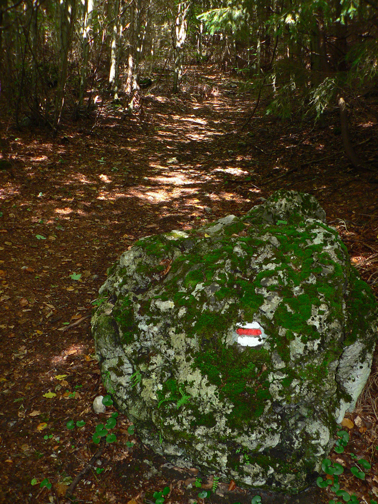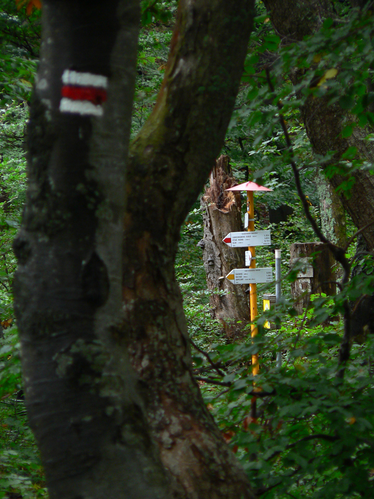 Ľubochnianske sedlo, to je kríž, smerovník, ale aj bzučiace drôty, betónová cesta, vyholené svahy, no fuj! Aj zostup do doliny začína vlhkým, blatistým výmoľom. Kedysi ale práve tadeto (a nie dolinou Váhu) viedla stará obchodná cesta od Jadranu cez Turiec na Liptov a ďalej až k Baltu, ktorú používali vari už Rimania.