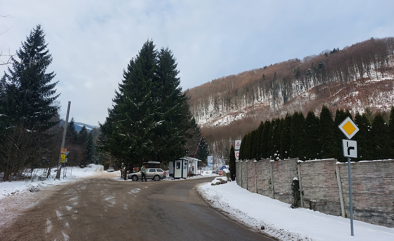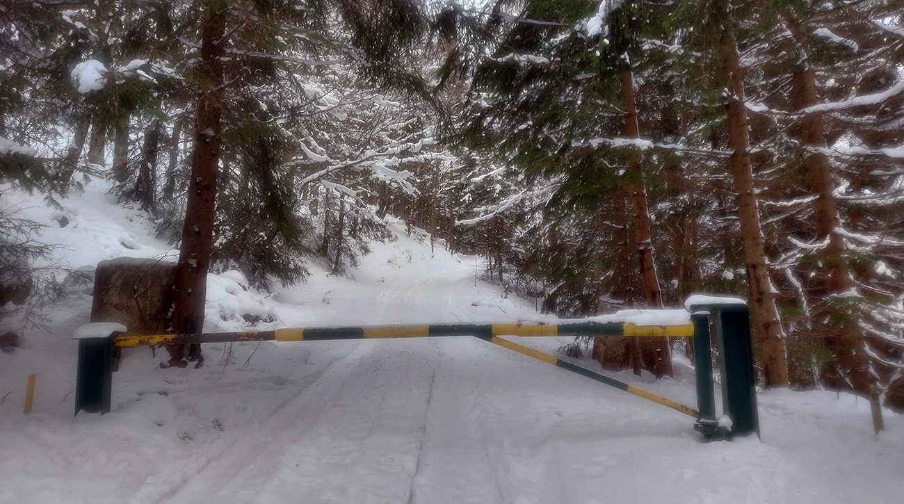 Jasná správa: kto chce ísť teraz na Hole na pásoch, oveľa lepšie spraví, keď pôjde z Vrútok a nie z Martina. Serpentíny zo Strání, spod starej lanovky (žltá značka) sú od mostíka také zodraté pešiakmi, že ažžžž. Zato od rampy v Jedľovinách, kde vyberajú poplatok za cestu, sa v podstate dá hore aj dole od auta. Zaparkovať je kde na dvoch malých parkoviskách hneď nad rampou. Cesta „investička“, ktorá odtiaľ vedie na tie Stráne, je spevnená, pokrytá pár cenťákmi autami ujazdeného a pešiakmi uchodeného snehu, ideál aj pre mtb. Síce na začiatku (medzi parkoviskami a za prvou zákrutou) cvakajú zubami húfy malých piraní, ale cestou hore je ľahké sa im vyhnúť a cestou dole sa dajú opatrne poobchádzať. Alebo už zniesť, je to k rampe ani nie 500 m. Od krmelca na prvom kopčeku je to už pohoda hore aj dole, samozrejme s trochou pozornosti. Takto to vyzeralo, len som na jednom mieste trochu experimentoval a moc to nevyšlo, na to upozorním nižšie. No v tejto biede treba improvizovať, čo už...