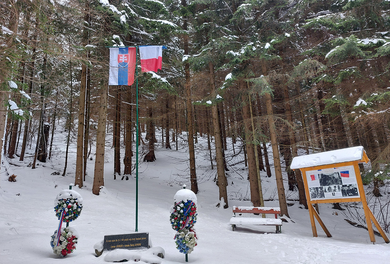 Potom nastal ten experiment, lebo som zo serpentín odbočil k pamätníku francúzskych partizánov (fajná cesta), že od neho starým chodníkom prerazím vyššie na asfaltku – lenže tam je to také zarastené, že už žiadny "partizánsky frírajd" nehrozí, ani keby neviem koľko napadalo. A to nie je tak dávno, čo sme tade dole jazdili. Tak som sa tam trochu zasekal v mladine – teba ísť od pamätníka pár metrov na sever, po zjazdárskom singli.