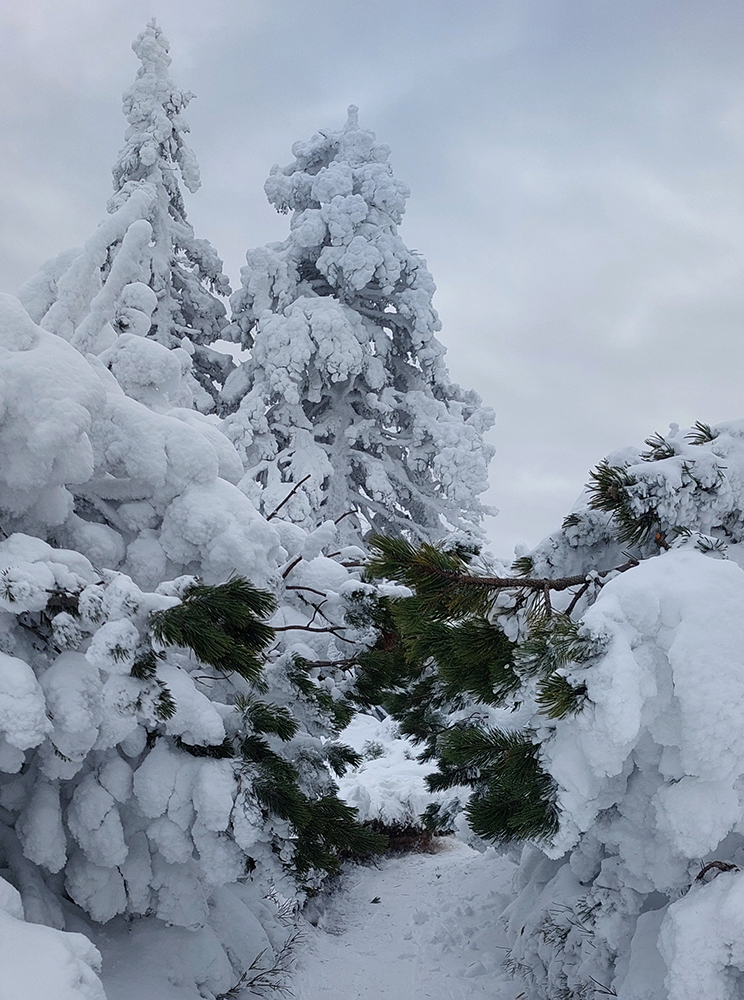 Ešte som odskočil k malému vysielaču na Veľkej lúke – záverečný válov v kosovke pekne vysnežený, aj cesta od vysielača kosodrevinou ďalej smerom na Vidlicu, len okolo smerovníka kameňolom. Vietor na holých plochách spravil medvediu službu všade.