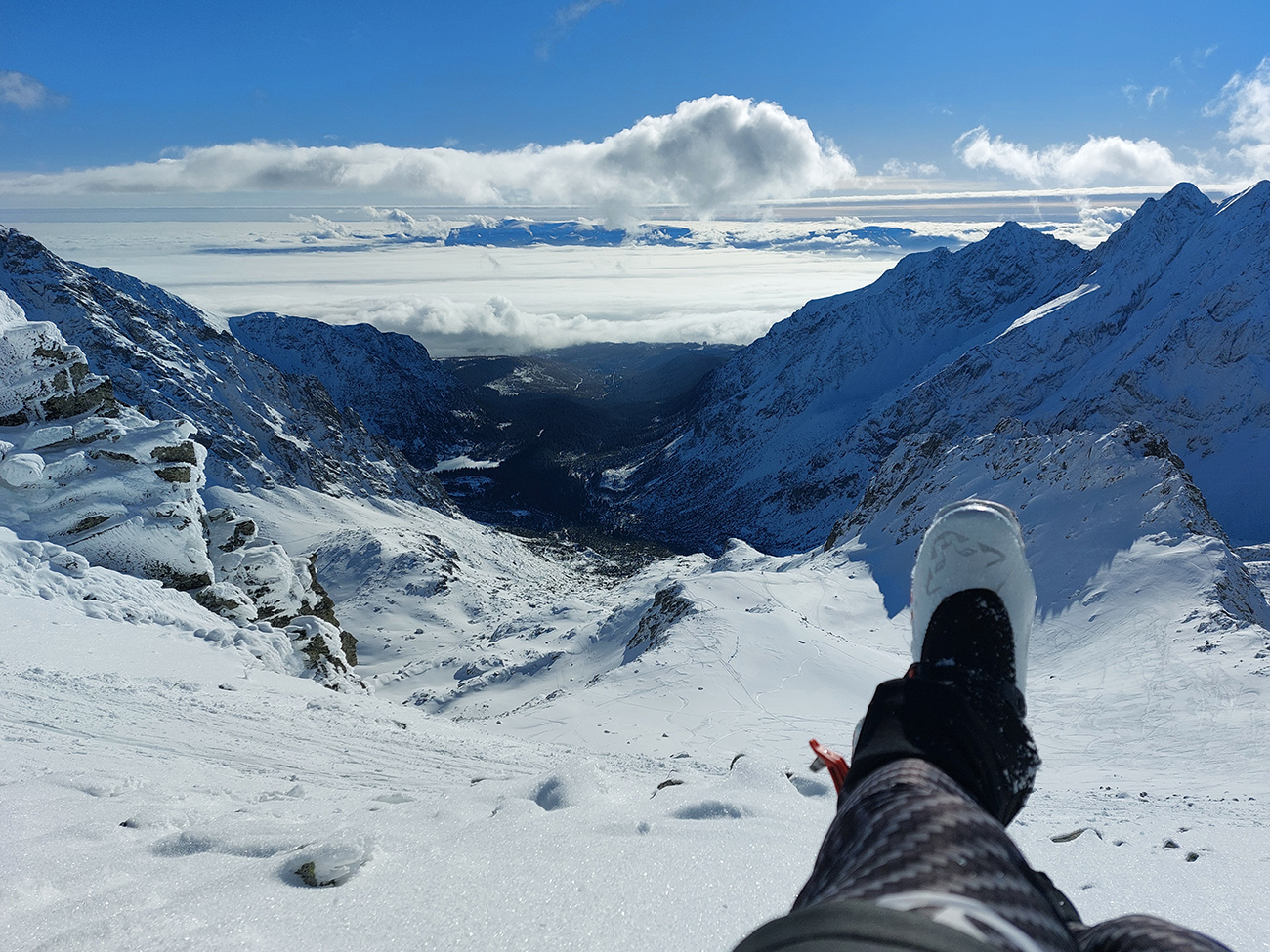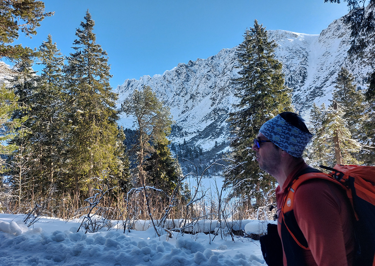 Hore trochu fúkalo, ale nie v závetrí. Tak čajíky a iné pochutiny, medzi nimi najlepšie boli tie výhľady na poľské mravce pod Rysmi a celkovo pohľady do primrznutej jamy s Čiernym plesom a Morským okom: