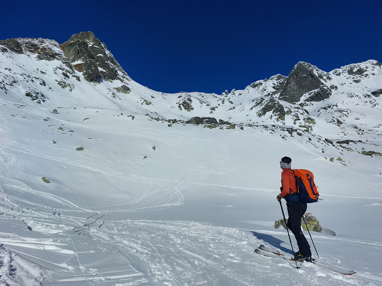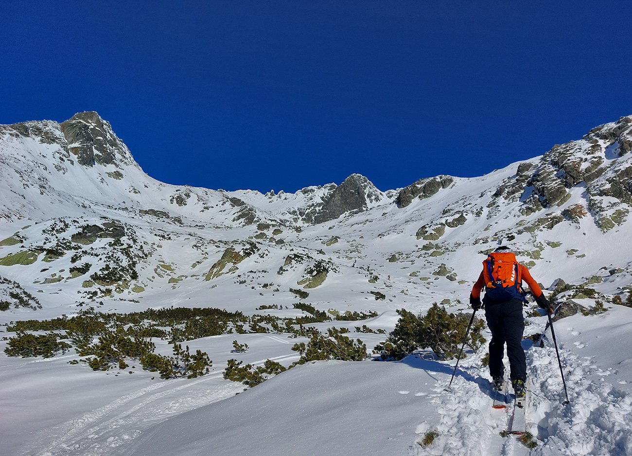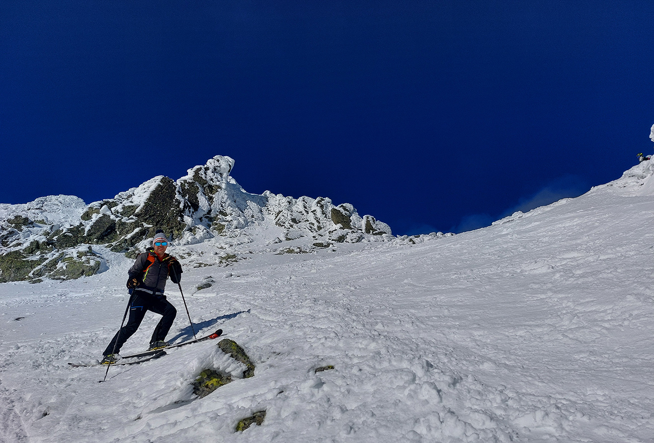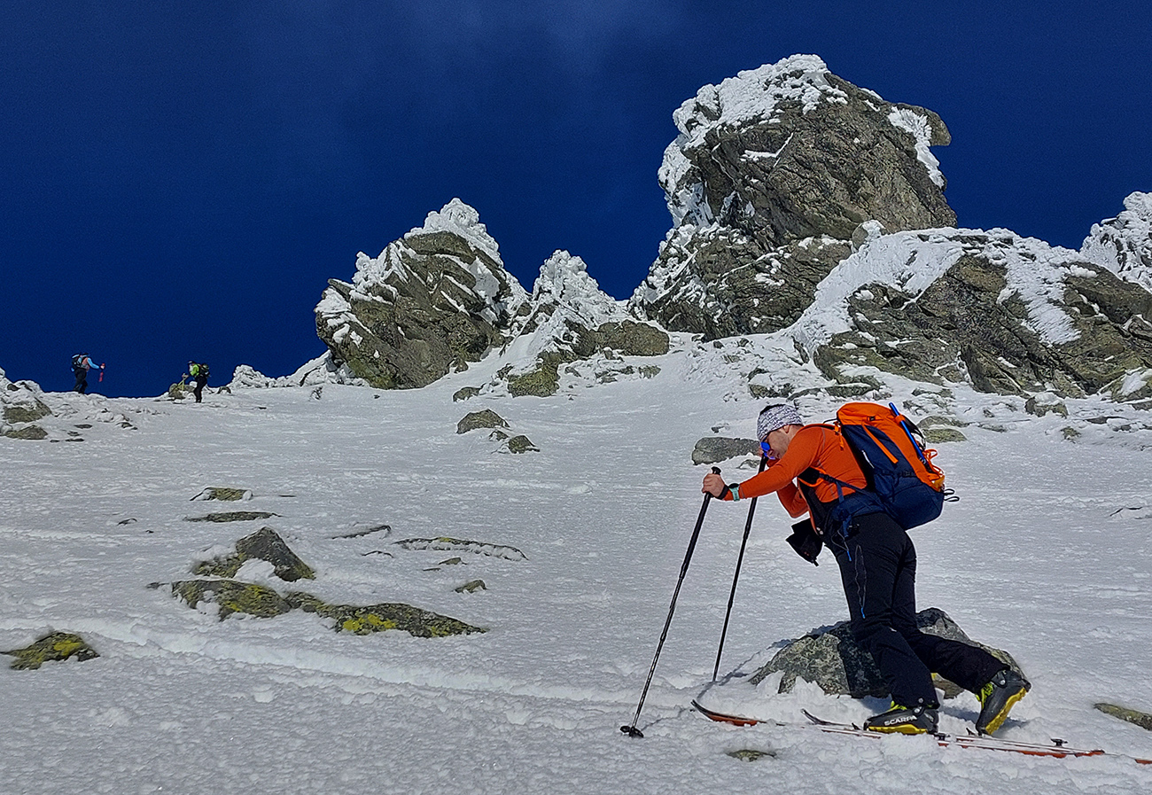 Rozhodli sme sa pre Nižnú Hincovu priehybu, teda vľavo od Západného Volieho rohu. No stopy naťahané všade a aj mravce sa všade mrvili. Niektoré už od radosti ujúkali dole kopcom. Lenže občas sa ozvalo aj nepríjemné zaškrípanie. Každopádne nám o lyžbu nešlo, tak sme sa vrhli do finálneho výšvihu po komfortnej stope. Srdečná vďaka predlezcom.