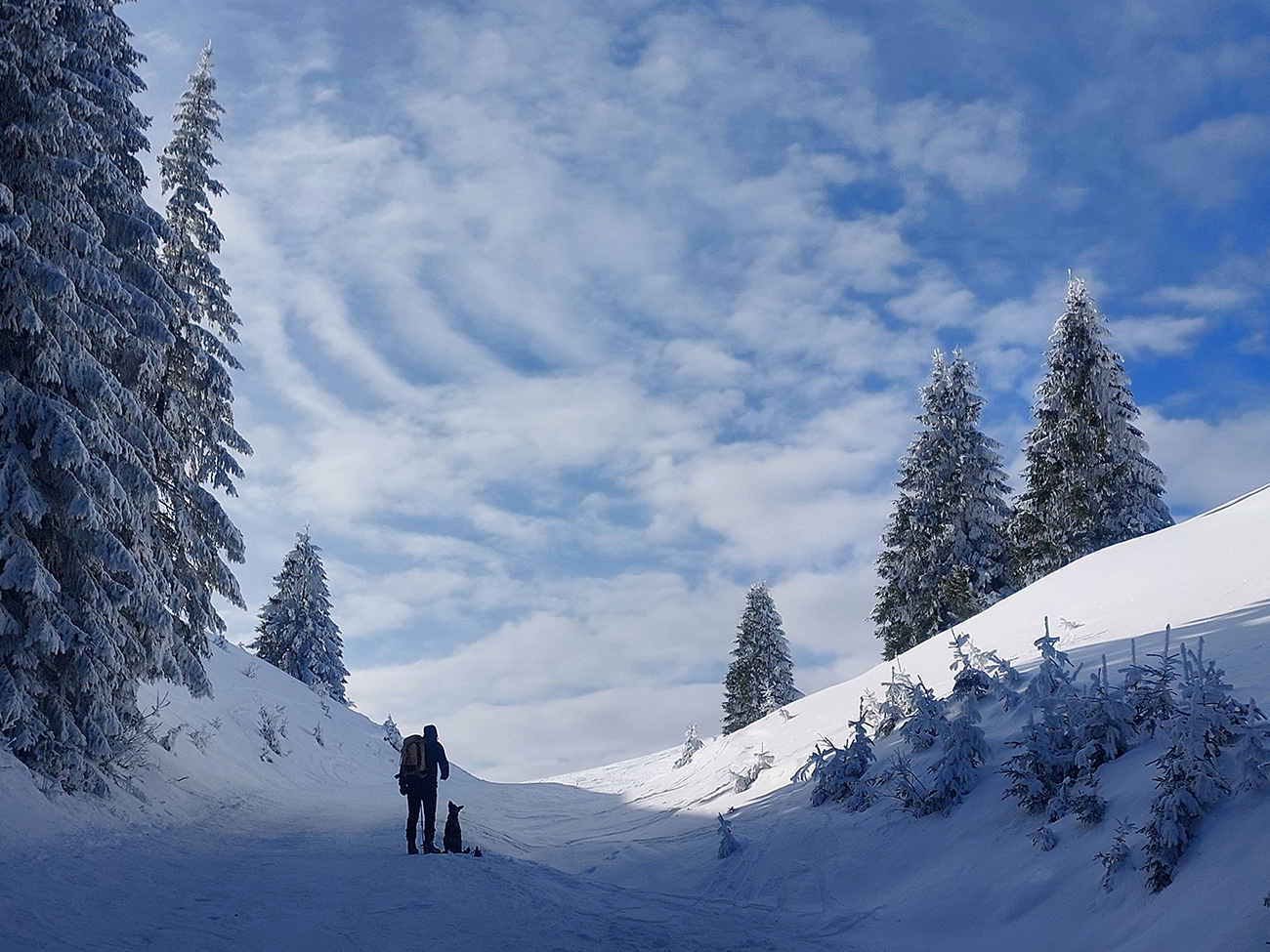 Potom už pohodlná šúchačka, skoro po vrstevnici. Zvyšky lesa obielené, počas takejto zimy to tam vyzerá stokrát lepšie ako v lete.