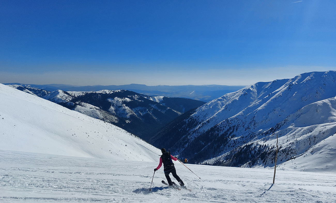 Ešte sme vyťapkali na Poľanu a nažhavení na jarné firny sme to odtiaľ stočili priamo dole po pláňach, niekam až tesne nad Vajskovský vodopád. Firny exkluzívne – na pevnom podklade natopená taká akurátna vrstvička, vôbec sa to ani v nižších polohách neborilo. Pre veľký úspech sme si to dali aj druhý raz, to už ale slnko dávalo poriadne cítiť svoju silu.